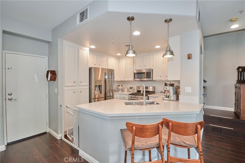 Welcome to your new home! This 3 bedroom/ 2.5 bath home is FULLY UPGRADED and move in ready. Beautiful laminate wood floors , recessed lighting, dual pane windows and new paint throughout. Downstairs features a spacious, open floor plan. Kitchen Has new a quartz counter-top, and new cabinets. Rooms are spacious and filled with natural light. Master bedroom has attached master bathroom and private balcony. Downstairs features a spacious back patio for entertaining and an attached 2 car garage for convenience. LOW HOA! This home will go FAST!