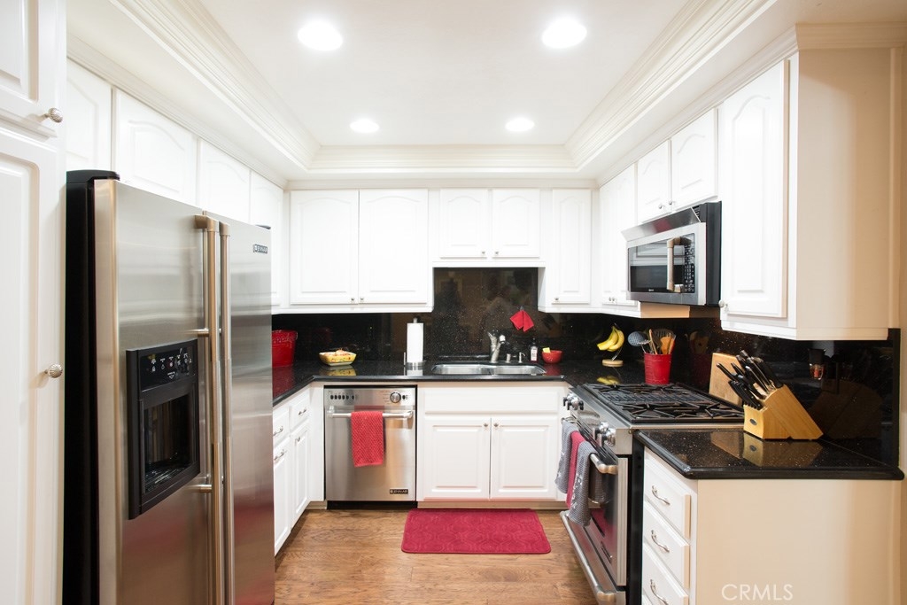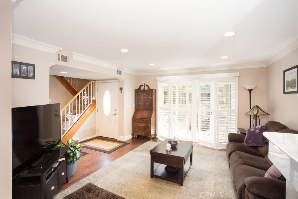 This turnkey townhome is a must see! Spacious rooms, oversized master bedroom plus gorgeously remodeled throughout. 3 bedrooms, 2.5 bathrooms, enclosed patio, newer master bedroom balcony deck and 2 car attached garage with plenty of storage plus additional designated parking spot. Features include: Lovely front door with glass accents, elegant marble fireplace, beautiful kitchen with granite counters and full backsplash, Jenn-air stainless steel appliances. Double door entry to master bedroom, en-suite master bathroom, walk-in master closet. That is not all...plantation shutters, 6 1/2 inch crown molding/base boards, dual pane windows, new interior doors, central air conditioning, new 50 gallon water heater in 2016, newer furnace, custom french sliding doors, recessed lighting, upgraded electrical outlets and switches, hardwood floors downstairs, and plentiful storage in garage. This home is conveniently located close to award winning Cypress Schools, Cypress College, Parks and Library. The prestigious OXFORD ACADEMY is nearby. Freeway close to 605, 405 and 91 Freeways. Ask me about special financing for teachers and first time home buyers. VERY BEAUTIFUL HOME WITH MANY EXPENSIVE UPGRADES! THIS HOME IS A GREAT VALUE FOR ORANGE COUNTY AND CYPRESS! TURNKEY!!