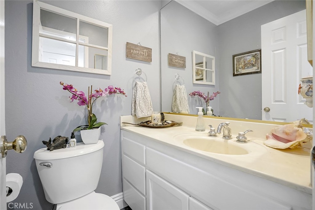 Stunning 2 bedroom, 2 ½ bath end unit condo in Cypress! Not only is the most desirable floor plan in the complex, this is arguably the most desirable location. 2 master bedrooms with their own en-suite full bathrooms, an additional ½ bath for guests located downstairs and a 2 car attached garage with direct access. The pool is steps from your doorstep. Indoor laundry hookups conveniently located upstairs adjacent to the bedrooms. The interior features a beautiful expanse of earth-toned waterproof/scratchproof vinyl flooring, new custom paint and new molding. Vaulted ceilings add volume to an already ample interior space. Natural light graciously flows into the living areas through the perfectly placed windows, sliding glass door and skylight. Other recent upgrades include a tankless water heater, and Nest smoke/carbon monoxide detectors. Enjoy beautiful morning and afternoon views or Knott’s Berry Farm fireworks from the upstairs balcony. Great central Cypress location and Oxford Academy is only a 4 minute drive away.