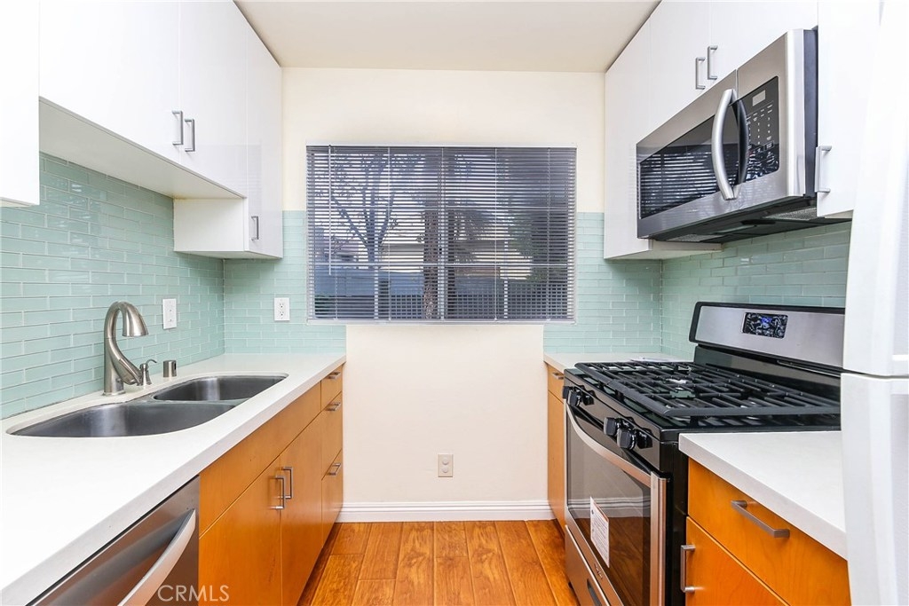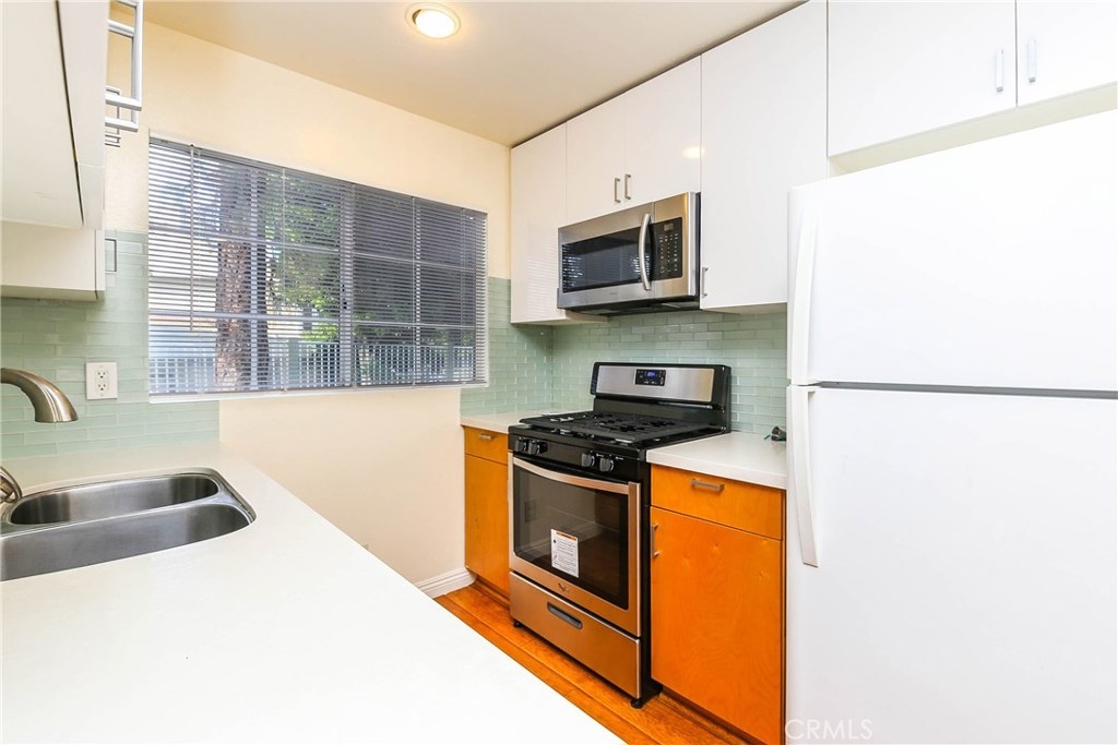 MOVE IN CONDITION. Beautiful 2 Bd. 2.5 Ba 2 Story End Unit Condo Is A Dream Come True, Excellent School District (Walker Jr. Kennedy, Oxford High) Very Clean & Sharp Home, Pride of Ownership, Elegant Living Rm. With A Cozy Fireplace, Remodeled Contemporary Kitchen with Caesar Stone Counter Top, Maple Cabinets, and Glass Tiles. New Stainless Appliances, & Dining Area With A Half Bath. New Central A/C and Heating, Laminate Wood Floors, and Fresh Paint. Two Master Suite Bedrooms with Large Closets and Storage Space, One with Master Bath and Private Balcony Deck with Sliding Glass Door. Skylight, Indoor Enclosed Laundry Area Upstairs. Attached Direct 2-car Garage Access To Downstairs. This Fabulous Condo Is Off Of A Beautiful Greenbelt Overlooking A Refreshing & Relaxing Pool Area, This Is A Must See, Hurry It Won t Last!