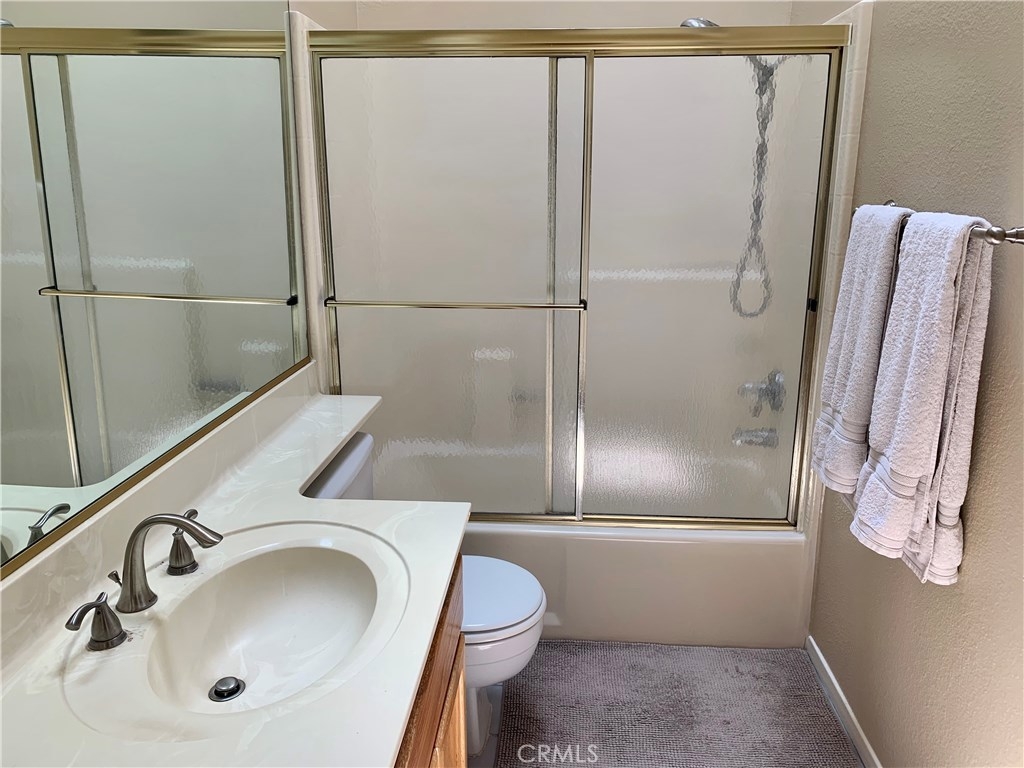 Welcome home to Cambridge Commons, an intimate community ideally situated in Cypress. This home is in the desirable Kennedy High School zone or apply to the coveted Oxford Academy and Cypress College. In the heart of the neighborhood, not too close to either the street or the pool, you will find this immaculate townhome ready for you to enjoy. A path with shade trees and an inviting grassy front yard greet you at the door. Step through the formal entry into the living room with newer laminate flooring, fireplace and custom paint. The living room opens to both the dining room with ceiling fan and kitchen for easy entertaining at home. Even the 2 car garage with automatic opener offers direct access here making bringing home groceries a breeze. The kitchen is well-equipped with a gas range, built-in microwave, dishwasher and dual sinks. Together upstairs, both of the bedrooms have vaulted ceilings and their own full bathrooms. The first bedroom features a fireplace, fun built-in bunk and wall of closet space. Conveniently located between the bedrooms is the cedar-lined laundry closet and linen cabinets. The second bedroom is the Master, providing an ensuite bathroom including dual sinks and skylight. When you are not inside enjoying all that this home has to offer, relax and unwind in the gated greenbelt recreation area and sparkling pool. Move in just in time for summer!