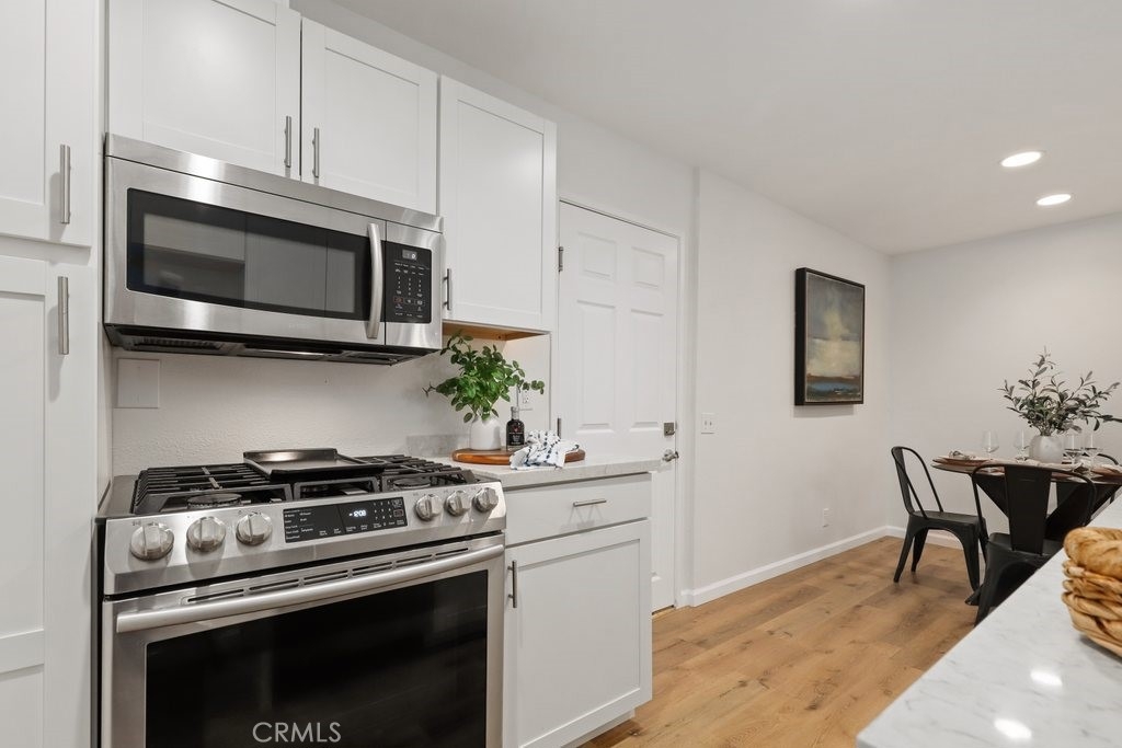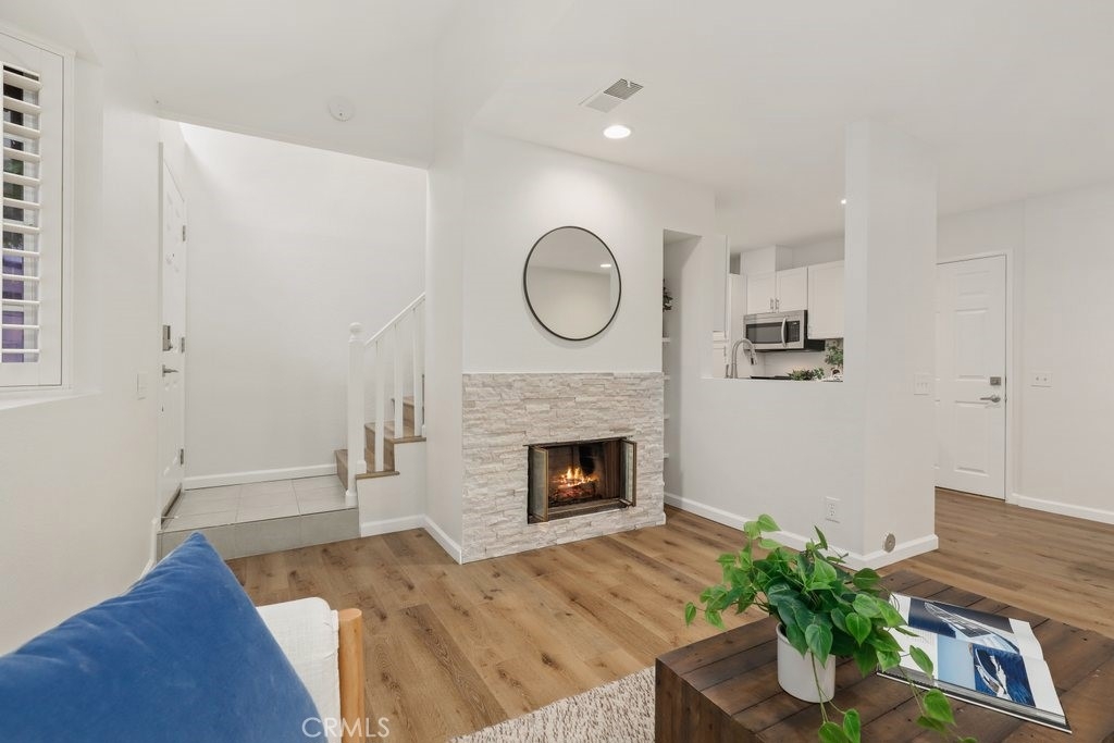 Completely remodeled, this Cambridge Commons condo is move-in ready! Warm vinyl wood floors, plantation shutters and fresh neutral paint throughout complement the bright and open floorplan. Enter into the inviting living room, featuring a cozy stacked stone fireplace, that seamlessly flows to the dinning room and to the kitchen. The kitchen has been upgraded with fresh white cabinets, quartz countertops, stainless steel appliances and offers direct access to the attached two-car garage. Upstairs, the primary bedroom features an en-suite primary bathroom with dual sinks and a luxurious walk-in shower. The secondary bedroom is generously sized offers a second cozy fireplace and direct access to the full hall bathroom. Enjoy the nearby community pool, local dining, shopping and entertainment. Great central Cypress location with easy freeway access and Oxford Academy only a few minutes away. Welcome home!
