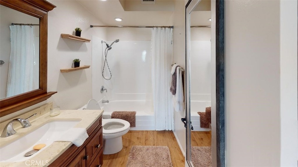 Welcome home! Cypress Monterey gated community Condominium. WANT TO WALK THROUGH? RIGHT NOW? Paste this link https: // my.matterport.com / show/? m=HXaDQdaw5wf&mls=1 Walk into the room of your choice. When inside, take a 360 degree view... walk to the next room, repeat. And then look at the 3-D floor plan rendering. This home features 1 large master bedroom with walk in closet. 1 bathroom which has been upgraded and remodeled. Also Featuring a Direct access 2.5 car garage which can potentially park 3 cars with lots of storage space and work bench station area. Additionally this home has been completely remodeled and updated. Featuring Spacious Kitchen with lots of counter space and Stainless steel appliances. Central air conditioning and heating, Nest thermostat, Dual Pane vinyl windows, new carpet in the living room and bedroom area's, wood flooring in the kitchen and dining area, recessed lighting throughout. Lastly but not least Sliding door access to the Private quiet cozy patio area. Great for entertaining or to sit back relax and enjoy the Sunshine. Cypress Monterey community features many amenities Gated and secured access, Trash pick up, Exterior maintenance and landscaping. Pools, Jacuzzi's, tennis courts and lush greenbelts. Best of all Award Winning Cypress Schools. Cypress high school, Oxford Academy, and Morris Elementary. Conveniently located near neighborhood schools, Shopping Center's, Restaurants, and the Cypress public library. Don't miss out on this one!