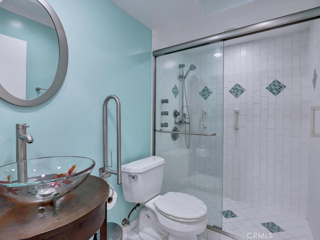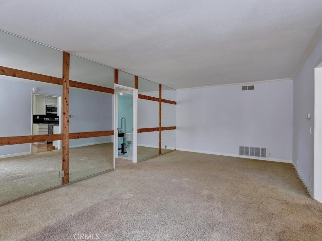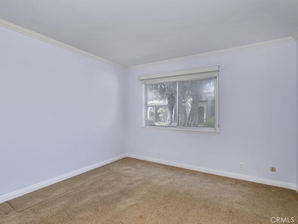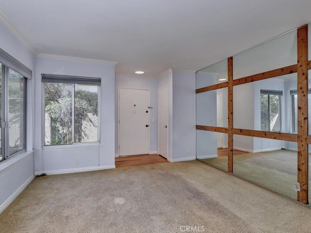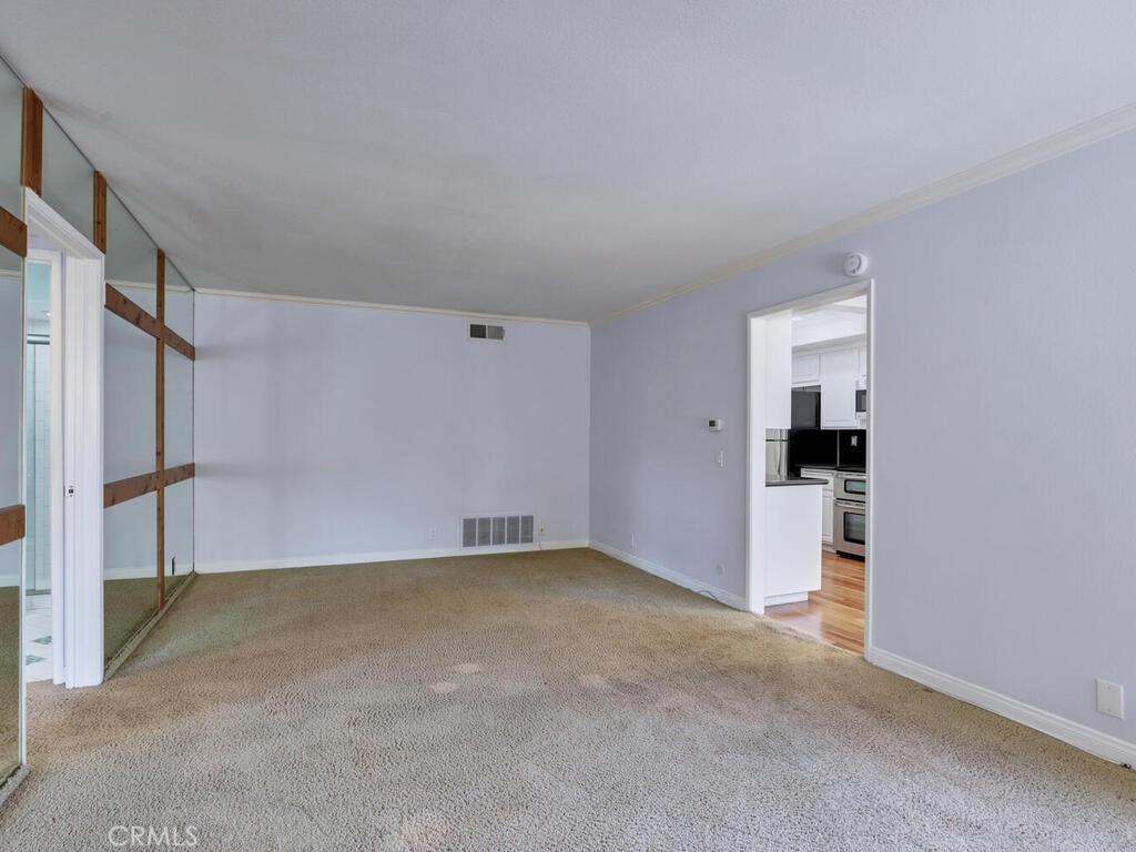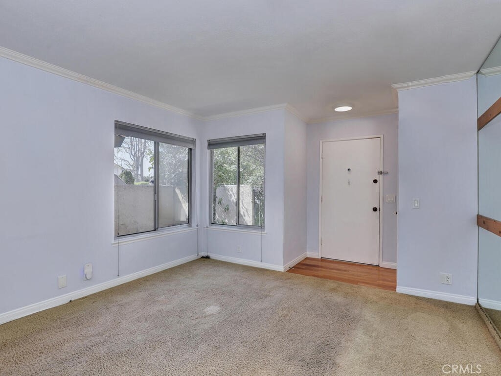 Welcome to this beautifully updated one bedroom condo, nestled in a secure gated community with a call box for added peace of mind. This property boasts brand new interior paint, elegant crown molding throughout, and scraped ceilings, creating a fresh and modern ambiance. The kitchen has been updated; featuring sleek black quartz countertops, a double electric oven with cooktop, an over-the-range microwave, a dishwasher, and a refrigerator. The natural hardwood floors and recessed lighting add warmth and lots of light. Enjoy the comfort of central AC and heating, a custom/sleek security screen door, freshly steam-cleaned carpets in the living room and bedroom, and updated light fixtures throughout. The living room’s custom mirrored wall enhances the sense of space and light. The master bedroom offers a walk-in closet, luxury window coverings with blackout blinds, and an en-suite bathroom complete with updated fixtures, and a custom side shower head sprayers. Step outside to your private patio, accessible through a sliding glass door off the dining area—perfect for relaxing or entertaining. The attached 2-car garage comes equipped with an automatic opener, washer and dryer, and ample storage space and a 40 gallon Bradford White water heater. As part of this desirable community, you’ll have access to multiple HOA pools, jacuzzis, and tennis courts.