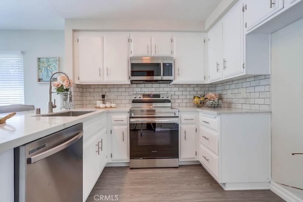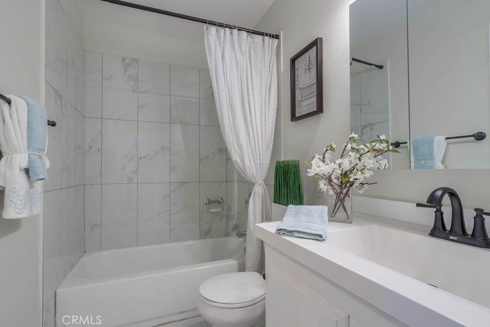 COMPLETELY REMODELED SINGLE-STORY END-UNIT! Rarely on the market! This beautiful townhome has just been completely updated. Situated in a very quiet and secluded and desirable location with tons of parking just out front. Through the front doors you’ll find new Luxury Vinyl Tile flooring with all new baseboards throughout. The spacious living area has a new LED light fixture and a gas fireplace with new Quartz hearth. The bright and absolutely beautiful kitchen features new Quartz counters, freshly painted cabinets with new modern hardware, recessed lighting, all new stainless-steel appliances and a peninsula with a breakfast bar. There is also plenty of space for your dining table that will look out to the back patio. The master bedroom is very spacious with access to the master en-suite. The bathroom has brand new tile flooring, new vanity mirror, all new countertops and faucet, LED light fixture, new tub tile! Other features include all new windows and slider, new wood fence, and all ceilings have been scraped with all new texture & paint! Cypress Village has plenty of beautifully landscaped common greenbelt areas, peaceful walkways, 3 pools & clubhouses, oversized jacuzzi, kiddy pool and tennis court, all managed by the HOA! Close to freeways, shops, dining, grocery stores and LA County border. Welcome home, don’t miss this opportunity! Cypress Village has plenty of beautifully landscaped common greenbelt areas, peaceful walkways, 3 pools & clubhouses, oversized jacuzzi, kiddy pool and tennis court, all managed by the HOA! Close to freeways, shops, dining, grocery stores and LA County border. Welcome home, don’t miss this opportunity!