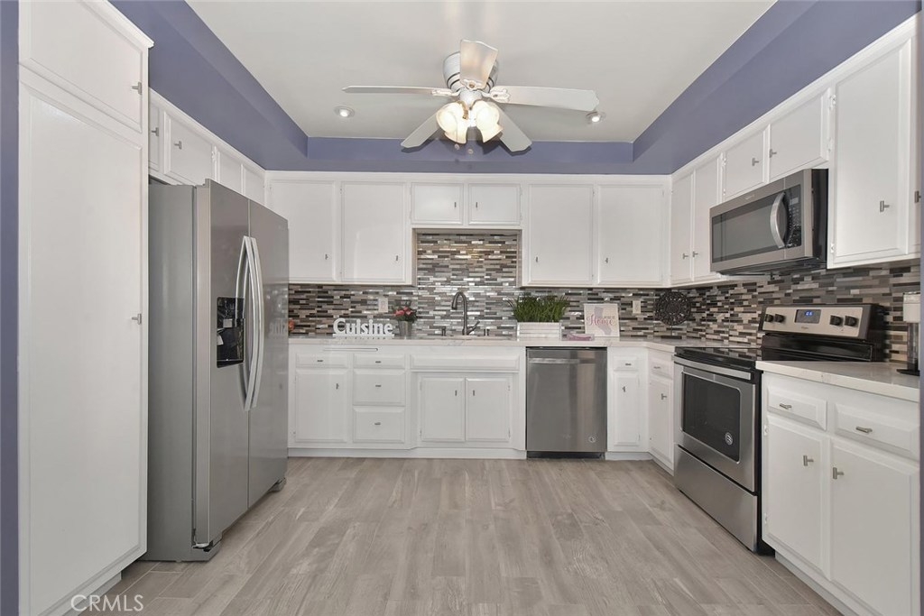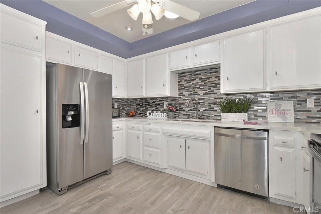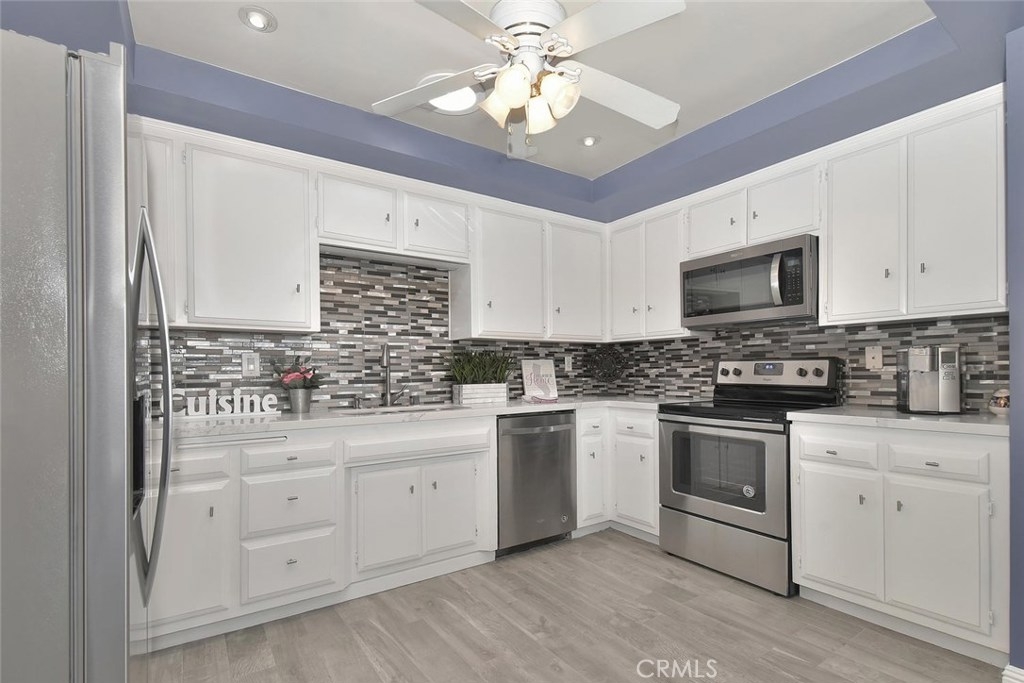 LOVELY SINGLE LEVEL HOME FULL OF GORGEOUS UPGRADES & PRIME LOCATION IN FABULOUS CYPRESS VILLAGE! This model is rarely on the market! Seller spent $$$ in expensive upgrades throughout including new stylish "wood-look" porcelain tile flooring! The living room has high cathedral ceilings, a gas fireplace, & new "wood-look" tile flooring. You will love the beautifully remodeled large kitchen w/quartz countertops, custom mosaic tile backsplash, recessed lighting, solar tube for natural sunlight, & new SS Whirlpool appliances including refrigerator. The dining room is full of sunshine w/cathedral ceilings & sliding door to patio. Enjoy extra space in master suite w/new carpet, upgraded mirrored triple-wide closet, & completely remodeled master bath w/luxurious custom tiled shower, new vanity w/marble countertop, new mirror, new hardware, recessed lighting & solar tube. 2 guest bedrooms w/private patio views & guest bath w/new vanity w/marble countertop, new mirror, new hardware, recessed lighting & solar tube. More highlights: New designer paint throughout, smooth ceilings, 6 ceiling fans, wide baseboards, inside laundry, 4 solar tubes, A/C, front courtyard w/brick planters, private back patio w/cover, & 2 car garage w/new automatic door & workbench, & beautiful view of pool area! The wonderful community of Cypress Village was built by S & S & has 3 Pools, 3 Clubhouses, Spa, Kiddy Pool, Tennis Court, Lush Greenbelts with Meandering Walking Paths, & a low HOA of only $270 per month!