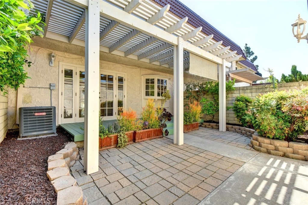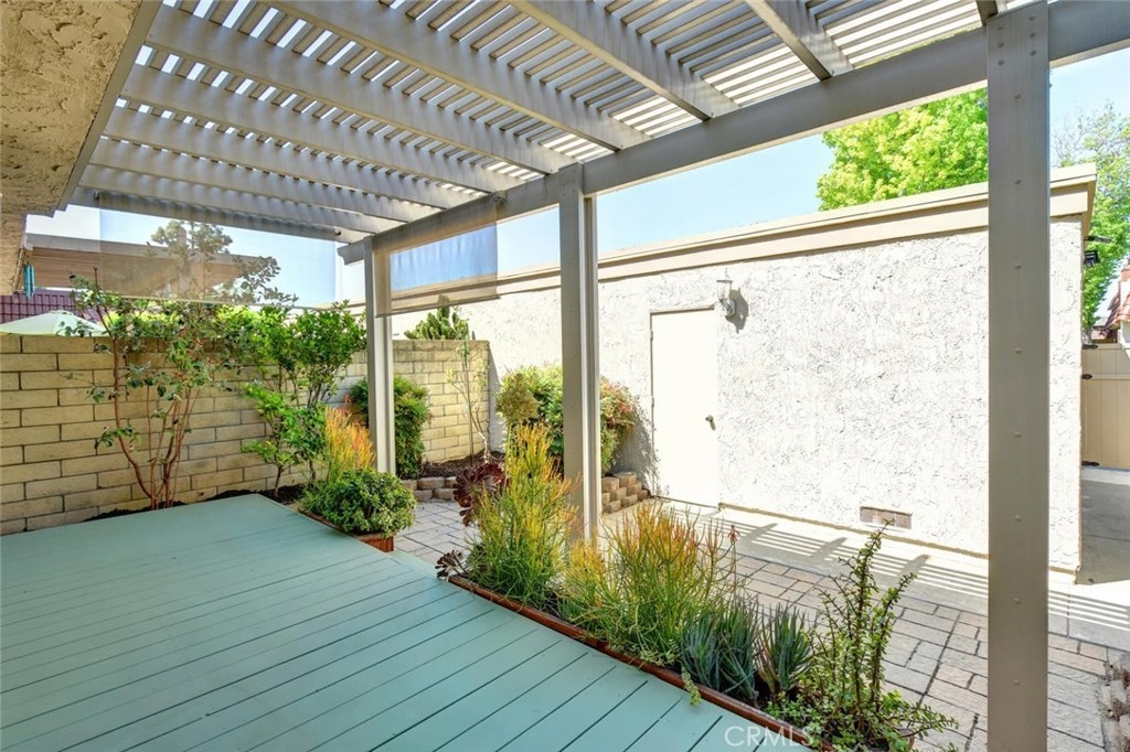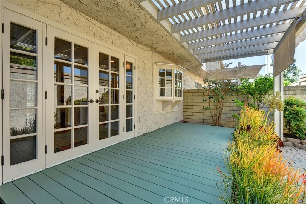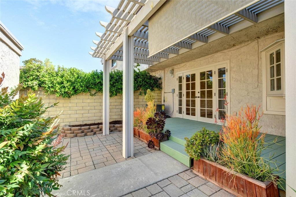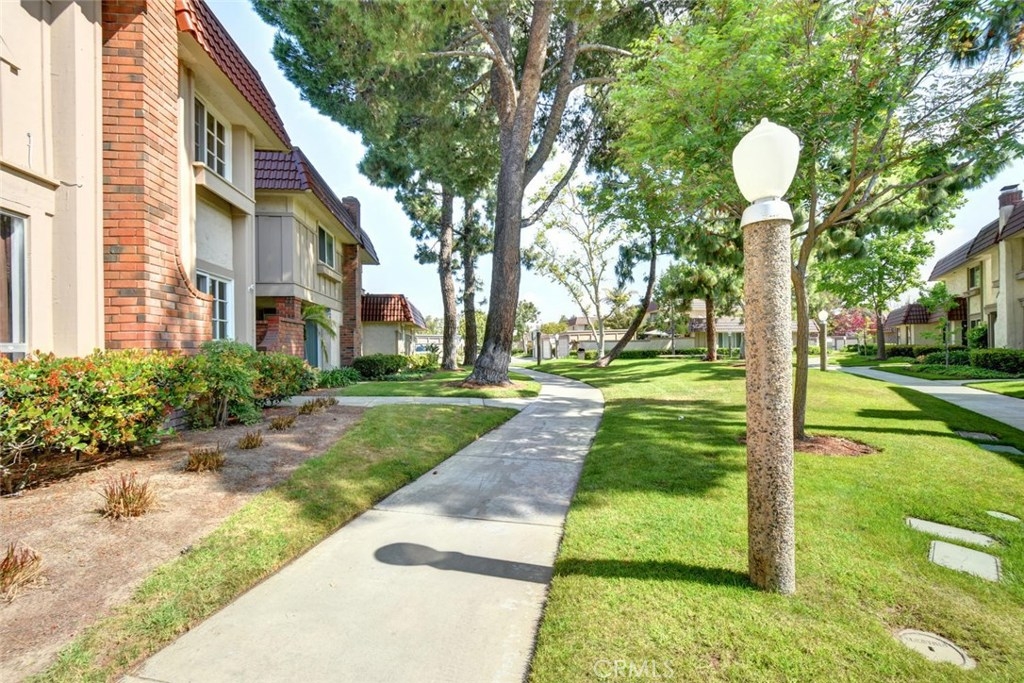 BEST OF LOCATIONS FACING GREENBELT IN CYPRESS VILLAGE WITH BEAUTIFUL, EXPENSIVE $$$ REMODELING THROUGHOUT! All rooms have been enhanced with HIGH QUALITY UPGRADES! This immaculate home is in excellent condition & filled with an abundance of natural light! Lower level features brand new laminate flooring, a spacious living room with crown molding & fireplace with gas logs, upgraded bathroom with pedestal sink, & dining room with French doors to patio. You will love the large remodeled kitchen with gorgeous granite countertops, refaced cabinetry, tile flooring, recessed lighting, & lovely garden window. Upstairs are 2 bedrooms w/plush carpeting, ceiling fans, crown molding, mirrored & organized closets, including a huge master suite w/walk-in closet. More remodeling in bathroom with upgraded bathtub/shower enclosure, upgraded double sink and vanity with granite countertop, designer fixtures & lighting, & tile flooring. More amenities: High quality dual pane windows, new neutral interior paint, upgraded fixtures & hardware, recessed lighting, smooth ceilings, inside laundry, A/C, a fantastic added storage closet, front courtyard, charming back patio w/decking, aluminum patio cover w/shades, garden plants & trees, & finished 2 car garage w/epoxy coat flooring! The wonderful community of Cypress Village was built by S & S and has 3 Pools, 3 Clubhouses, a Huge spa, a Kiddy Pool, Tennis Court, Lush Greenbelts with Meandering Walking Paths, & LOW HOA of $252 per month!