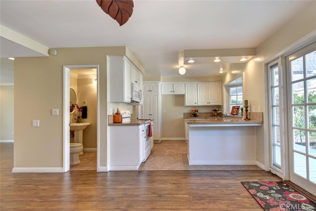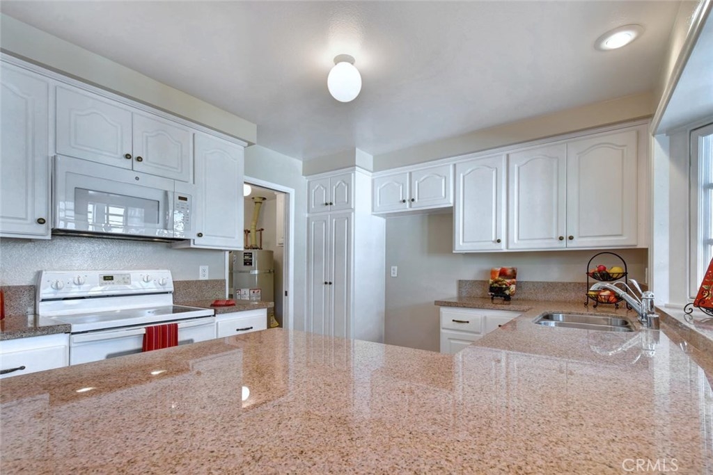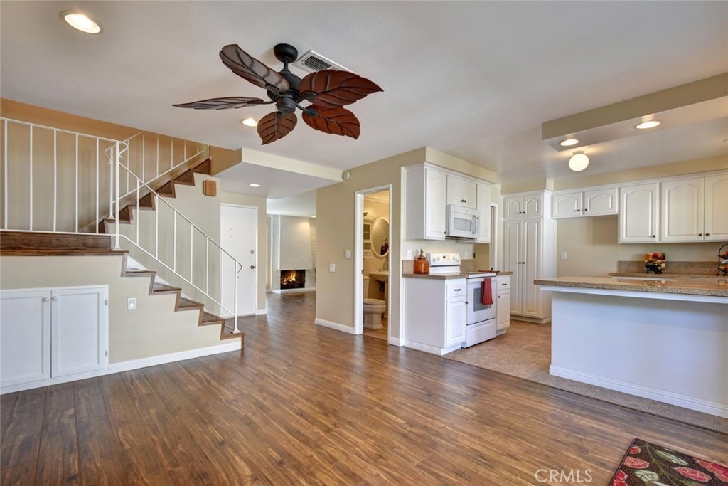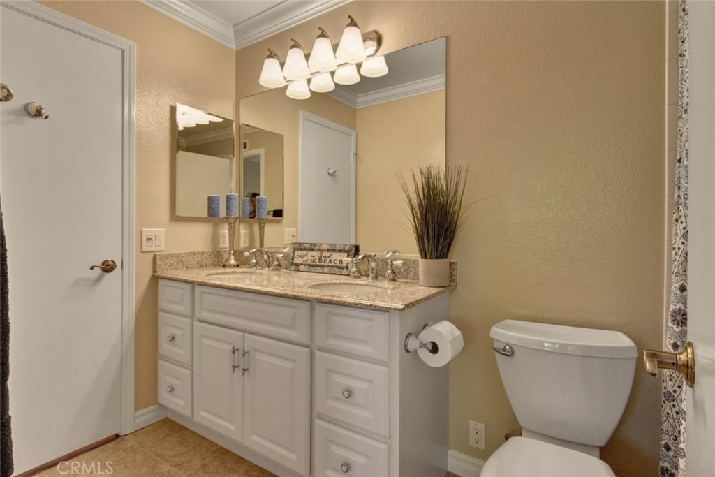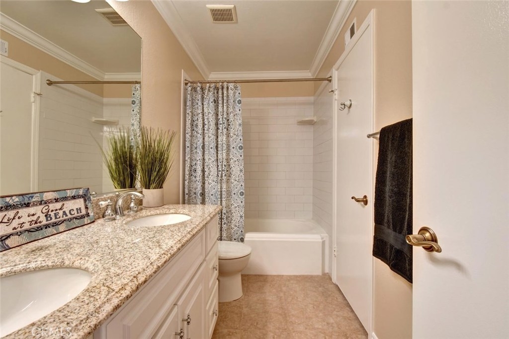 BEST OF LOCATIONS FACING GREENBELT IN CYPRESS VILLAGE WITH BEAUTIFUL, EXPENSIVE $$$ REMODELING THROUGHOUT! All rooms have been enhanced with HIGH QUALITY UPGRADES! This immaculate home is in excellent condition & filled with an abundance of natural light! Lower level features brand new laminate flooring, a spacious living room with crown molding & fireplace with gas logs, upgraded bathroom with pedestal sink, & dining room with French doors to patio. You will love the large remodeled kitchen with gorgeous granite countertops, refaced cabinetry, tile flooring, recessed lighting, & lovely garden window. Upstairs are 2 bedrooms w/plush carpeting, ceiling fans, crown molding, mirrored & organized closets, including a huge master suite w/walk-in closet. More remodeling in bathroom with upgraded bathtub/shower enclosure, upgraded double sink and vanity with granite countertop, designer fixtures & lighting, & tile flooring. More amenities: High quality dual pane windows, new neutral interior paint, upgraded fixtures & hardware, recessed lighting, smooth ceilings, inside laundry, A/C, a fantastic added storage closet, front courtyard, charming back patio w/decking, aluminum patio cover w/shades, garden plants & trees, & finished 2 car garage w/epoxy coat flooring! The wonderful community of Cypress Village was built by S & S and has 3 Pools, 3 Clubhouses, a Huge spa, a Kiddy Pool, Tennis Court, Lush Greenbelts with Meandering Walking Paths, & LOW HOA of $252 per month!