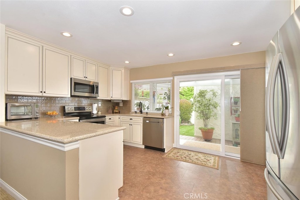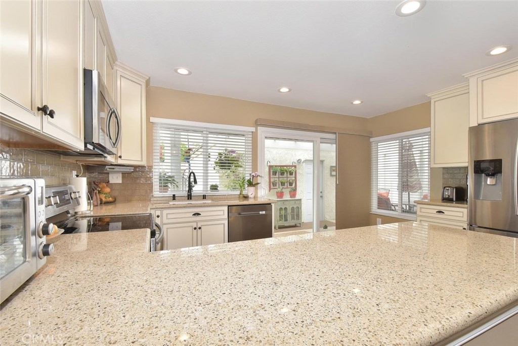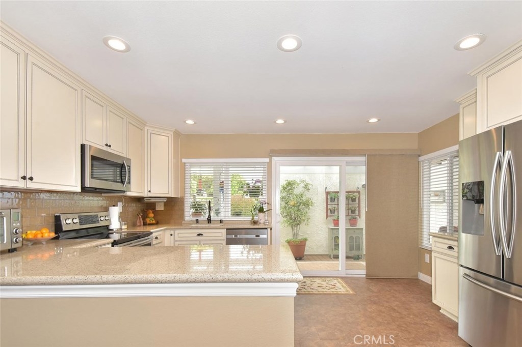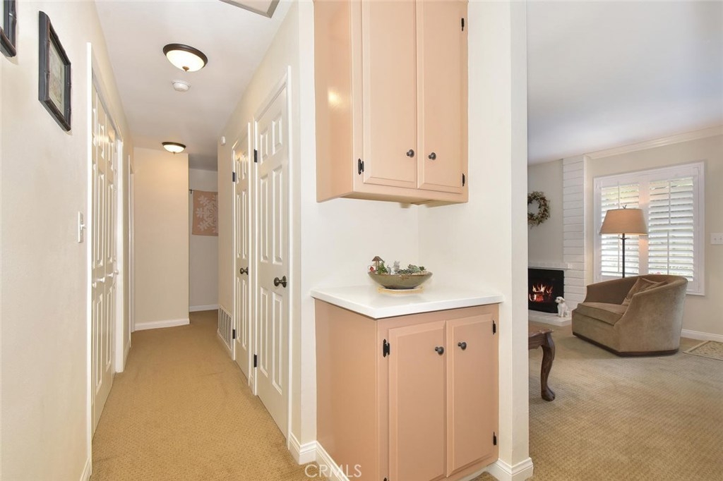 BEAUTIFUL SINGLE LEVEL END UNIT, RARELY ON THE MARKET, COMPLETELY REMODELED & GREAT LOCATION IN THE FANTASTIC COMMUNITY OF CYPRESS VILLAGE! This 3 bedroom model last sold in 2017 & is full of expensive $$$ upgrades throughout. Special touches begin w/the lovely leaded glass front door & living room w/gas fireplace, crown molding & plantation shutters, & continue into the dining area & absolutely gorgeous custom designed kitchen. No expense was spared w/Silestone countertops, subway tile backsplash, elegant soft close cabinetry, quality SS appliances, deep sink, designer faucet, coffee station, pantry, recessed lighting, amazing DuraCeramic tile floor, & slider w/view of your lovely patio. On to the spacious master suite w/neutral carpet, ceiling fan light, ample storage w/2 double wide closets & master bath w/large custom vanity w/Corian countertop, upgraded tiled shower & DuraCeramic tile floor. 2 guest bedrooms & another fabulous remodeled bath. More highlights: Dual pane windows & sliders, smooth ceilings, stylish panel doors w/upgraded hardware & casing, inside laundry, neutral paint, stylish lighting, wide baseboards, central a/c, a picture perfect completely remodeled patio w/all weather pergola, tile & vinyl decking, vinyl & stucco walls, charming bricked planter, artificial grass, & 2 car finished garage! Wonderful Cypress Village was built by S & S and has 3 Pools, 3 Clubhouses, Spa, Kiddy Pool, Tennis, Lush Greenbelts & Meandering Walking Paths & Low HOA of $270!