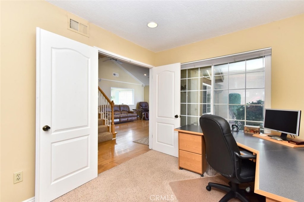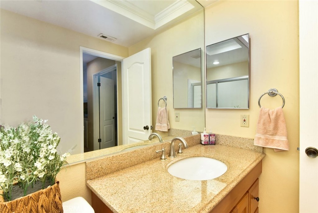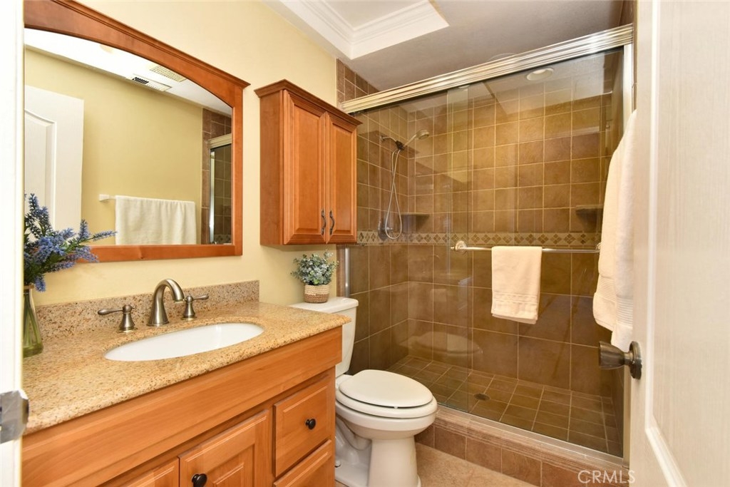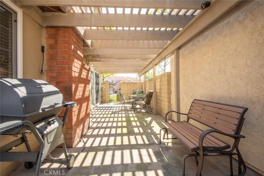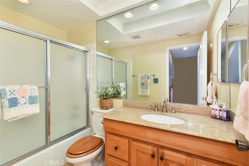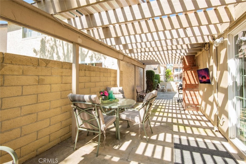 BEAUTIFULLY REMODELED & HIGHLY SOUGHT AFTER LOCATION IN THE FABULOUS COMMUNITY OF CYPRESS VILLAGE! This large beauty has 1,933 sq.ft. & expensive $$$ upgrades throughout. An impressive entry w/vaulted ceiling & fans, recessed lighting, crown molding, hardwood flooring, & lovely stone fireplace. The extra-large dining room is full of sunshine w/elegant lighting, delightful greenbelt view, & diamond pattern tile flooring continues into a gorgeous gourmet kitchen w/ beautiful cabinetry, granite countertops, stone backsplash, ss appliances, breakfast bar, Vinotemp Wine Cooler, & recessed lighting. Also downstairs is a remodeled powder room & office/4th bedroom. The upgraded staircase leads you to the 2nd floor & huge master suite w/cathedral ceiling & fan, 2 double wide mirrored closets, stunning custom master bath w/over-sized shower, & wonderful private balcony. 2 guest bedrooms w/mirrored closets & lovely tree views, & another upgraded bath. More upgrades: Dual pane windows & sliders, smooth ceilings, stylish 2-panel doors, inside laundry room, ample storage, newer central a/c & furnace & thermostat, & newer tile roof. 2 car garage w/workbench, ceiling fan, storage cabinets. Plus 2 RARE parking spaces! You will enjoy the spacious & low maintenance patio w/brick accents, & large pergola perfect for summer entertaining. Wonderful Cypress Village built by S & S has 3 Pools, 3 Clubhouses, a Huge Spa, Kiddy Pool, Tennis, Lush Greenbelts & Meandering Walking Paths & LOW HOA of $285!