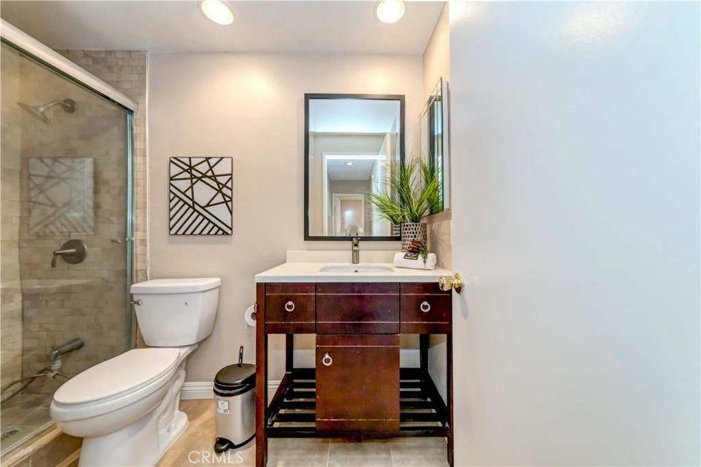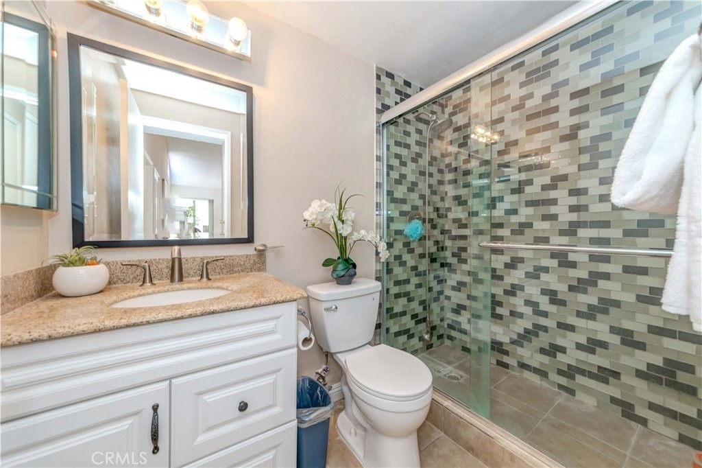 FABULOUS LAYOUT AND SUPERB SETTING! Popular and desirable Cypress Villiage community! Built by quality S & S builder. Surrounded by lush mature trees and greenbelts; a wonderful atmosphere. Very nice development, quiet, relaxing community ambiance; surroundings are very well kept by Association. Located on outstanding cul-de-sac, impressive curb appeal, gated entry with large courtyard and side patio creating the perfect place to entertain your friends and family -- also access through the back gate to the community beautiful greenbelt and amenities for added convenience. Lovely two story model. Three bedrooms + downstairs den (could be used as 4th bedroom) and 3 bathrooms; upon entering you will find a perfectly open concept flowing floor plan with abundance of natural sunlight. Grand entry with tile flooring, warm and inviting living room with dramatic vaulted ceilings and cozy rock fireplace. Spacious bright kitchen with tile countertops, white color cabinets and eating area. Nice French door leads to side yard with covered patio. Giant master bedroom with walk-in shower & sliding door leading to huge balcony for perfect relaxing or morning coffee. Freshly painted interior, brand new heating and central air conditioning installed, brand new blinds, upgraded dual-pane windows throughout. All 3 bathrooms have been remodeled/upgraded. All of this in a fantastic community with 3 clubhouses, 3 swimming pools & large spa, tennis courts and enviable greenbelts, walking paths. Highly acclaimed Patton Elementary, Bell Junior High and Pacifica High schools. Very convenient location, close to shopping, restaurants, parks, Navy golf course and transportation.