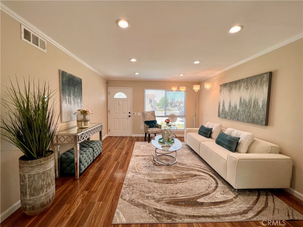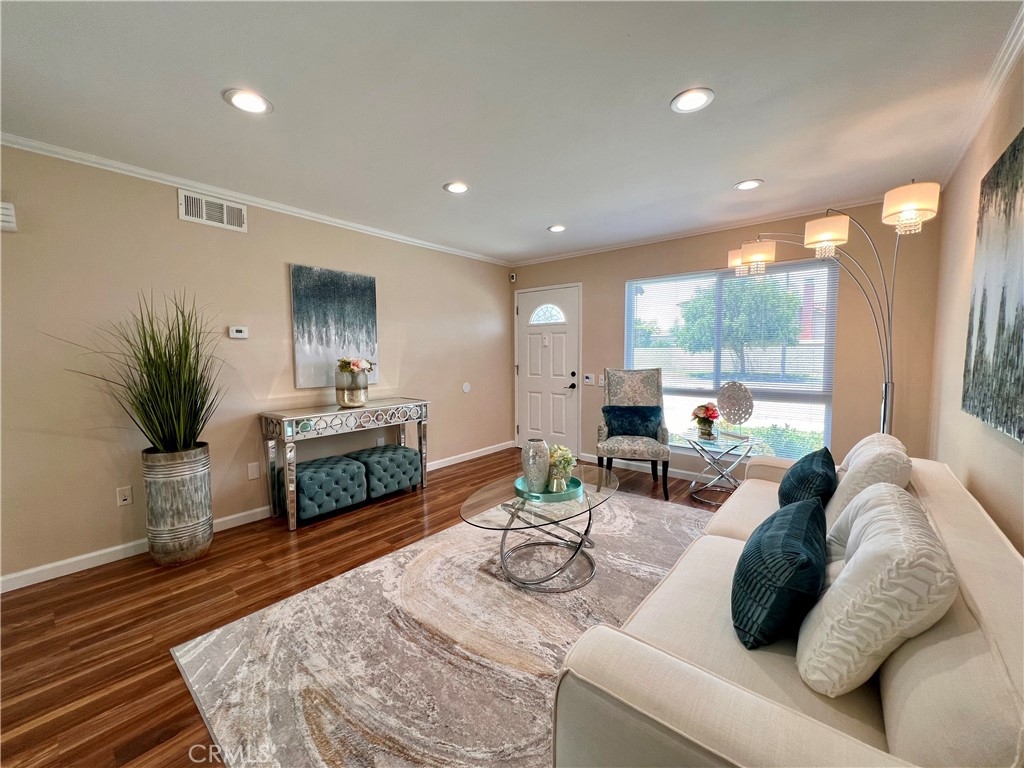 Welcome home to Cypress Village! This gorgeously remodeled four-bedroom, three-bath townhouse offers its new residents a spacious and versatile floor plan with multiple entertaining spaces. Through the front door is a spacious living area with lots of natural light, recessed lighting, and gas fireplace that leads into the dining area overlooking the patio. Luxury LVP flooring, new baseboards, crown molding, and recessed lighting on dimmers fill the home bringing in elegance. Prepare legendary meals in the fully equipped kitchen with custom shaker cabinetry, new hardware, stunning butcher block countertops, modern stainless-steel appliances including a half load dishwasher, tile flooring, and access to the adjoining dining area - everything a home chef needs! There is a downstairs bedroom with new carpet and a full bathroom with tile flooring, updated vanity, new shower door and re-glazed shower. Upstairs you'll find 3 bedrooms, all with LVP flooring, ceiling fans, recessed lighting and crown molding. The large master-suite features a walk-in closet and beautiful views of the neighborhood below. Outdoors you will find space for endless hours of entertainment in the garden backyard with a freshly stained fence. The detached two-car garage offers custom shelving and a workbench just waiting for your tools or crafting supplies to be put to good use. Some of the many amenities and upgrades you will find throughout this townhome include all new paint, dual paned windows, updated bathrooms, updated doors and hardware, ceiling fans, an HVAC system to keep you comfortable year-round and tons of parking options. Access the 22 freeway, shopping centers, LA Fitness, businesses, top-rated school system, Costco and even the new Trader Joe’s all within minutes of your front door - how convenient! This property is very close to one of the 3 pools and tennis court! Welcome home!