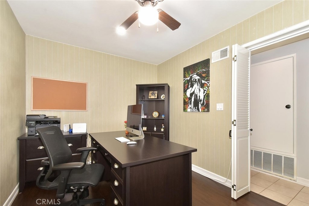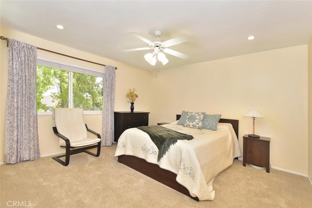 ABSOLUTELY BEAUTIFUL IN PRIME PARK-LIKE LOCATION IN THE FABULOUS COMMUNITY OF CYPRESS VILLAGE! Excellent curb appeal with large & completely remodeled gorgeous Flagstone patio for low maintenance & adorned w/custom iron work. An impressive entry with a soaring vaulted ceiling & living room with an attractive rock fireplace, laminate flooring, recessed lighting, & ceiling fan. The large dining room is bursting w/natural sunlight & accented by plantation shutters, crown molding, an elegant chandelier, & the most delightful greenbelt & tree views. Your spacious & upgraded kitchen has Corian countertops, quality appliances, breakfast bar, recessed lighting, & built-in desk. Also downstairs are a remodeled powder room & office/4th bedroom. Upstairs your lovely master suite w/cathedral ceiling, 2 double wide mirrored & organized closets, completely remodeled master bath & sliding doors to huge outside deck. Two guest bedrooms w/organized closets, plantation shutters, tree views & lovely upgraded bath w/granite countertop. More highlights: Dual pane windows, smooth ceilings w/5 ceiling fans, upgraded 2 panel doors, inside laundry room w/LG washer/dryer, high baseboards, ample storage, central ac, attractive interior & new exterior paint (2018), 2 car garage w/workbench, exquisite exterior lighting & vinyl pergola to enjoy the lovely patio. Wonderful Cypress Village built by S & S has 3 Pools, 3 Clubhouses, a Huge Spa, Kiddy Pool, Tennis, Lush Greenbelts & Low HOA of $270 monthly.