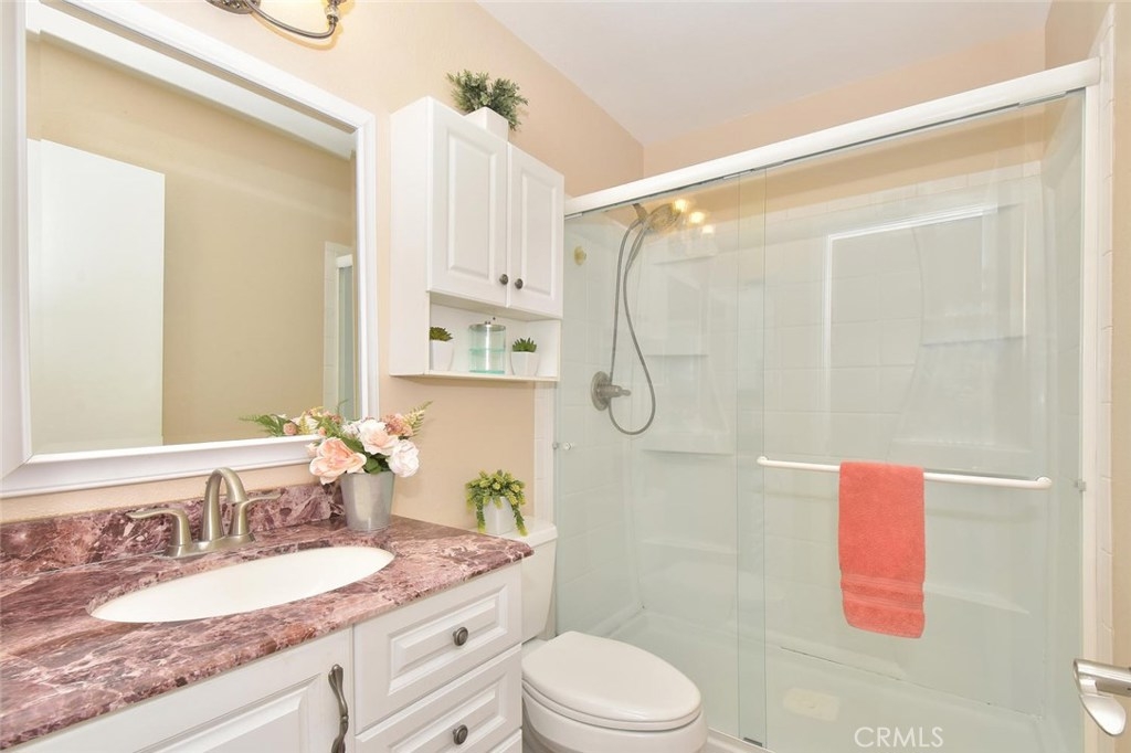 ABSOLUTELY LOVELY, GORGEOUS UPGRADES THROUGHOUT, GREAT LOCATION, SINGLE LEVEL END UNIT, & ALL THIS IN THE FABULOUS COMMUNITY OF CYPRESS VILLAGE! This large 2 bedroom model is full of high end upgrades & expensive remodeling $$$. Shows like a model home with an abundance of natural light featuring a living room with a stylish stacked stone gas fireplace, & quality glass sliding door with a view of your charming patio. The beautifully remodeled kitchen has gorgeous granite countertops, upgraded cabinetry w/pullouts, quality appliances, recessed lighting & tile flooring. You'll love the large master bedroom & w/2 double-wide mirrored closets for ample storage, plush carpet, & a completely remodeled elegant en suite bath w/an immaculate walk-in shower. There's plenty of space also in the extra large guest bedroom with a huge triple-wide closet & an attractive remodeled guest bath. More expensive highlights: Dual pane windows w/retractable screens, plantation shutters throughout, smooth ceilings, recessed and upgraded designer lighting, 3 ceiling fans w/lights on dimmer, wide baseboards, inside laundry w/washer & dryer, refrigerator, 3 mounted televisions, a/c, a wonderful remodeled patio w/rock accents & planter w/auto sprinklers, patio furniture & fire-pit, & 2 car garage with a newer "quiet" automatic door! Popular Cypress Village was built by S & S & has 3 Pools, 3 Clubhouses, Spa, Kiddy Pool, Tennis Court, Lush Greenbelts w/Meandering Walking Paths, & Low HOA of $270 monthly!