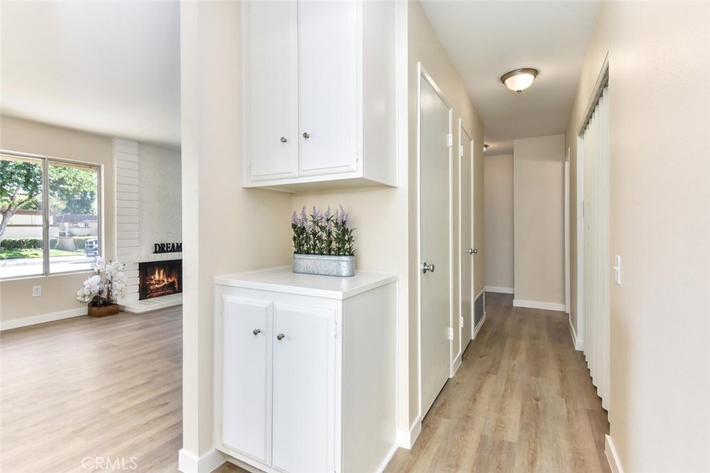BEAUTIFUL 3 BEDROOM 2 BATH SINGLE LEVEL END UNIT, RARELY ON THE MARKET, MANY UPGRADES & GREAT LOCATION IN THE FABULOUS COMMUNITY OF CYPRESS VILLAGE! This highly sought after model is the largest single level floor plan with over 1,300 sq. ft. This home is full of natural sunlight & lovely upgrades including brand new & stylish wood look vinyl plank flooring throughout. Enjoy a spacious living room & dining area with the ambiance of a gas fireplace for those cool evenings. In the kitchen you will love the upgraded cabinetry & granite countertops, quality appliances & view of your private patio. You will find plenty of space in the master suite with 2 double wide closets, slider to the patio, ensuite bath with an extra large vanity, walk-in shower, & new toilet. Two more guest bedrooms & a full bath makes this home perfectly complete! More highlights include: New neutral interior paint & smooth ceilings throughout, wide baseboards, ample storage, new lighting, new hardware, inside laundry including washer & dryer, upgraded furnace, newer water heater, & central air conditioning! You are sure to enjoy the lovely & easy to maintain private patio with access to your own 2 car garage. Wonderful Cypress Village was built by S & S and has 3 Pools, 3 Clubhouses, Spa, Kiddy Pool, Tennis, Lush Greenbelts & Meandering Walking Paths & Low HOA of $285! Top rated award winning schools are 9's & 10's. This beauty has it all, plus easy access to fwys., shopping, dining, the beach & parks!