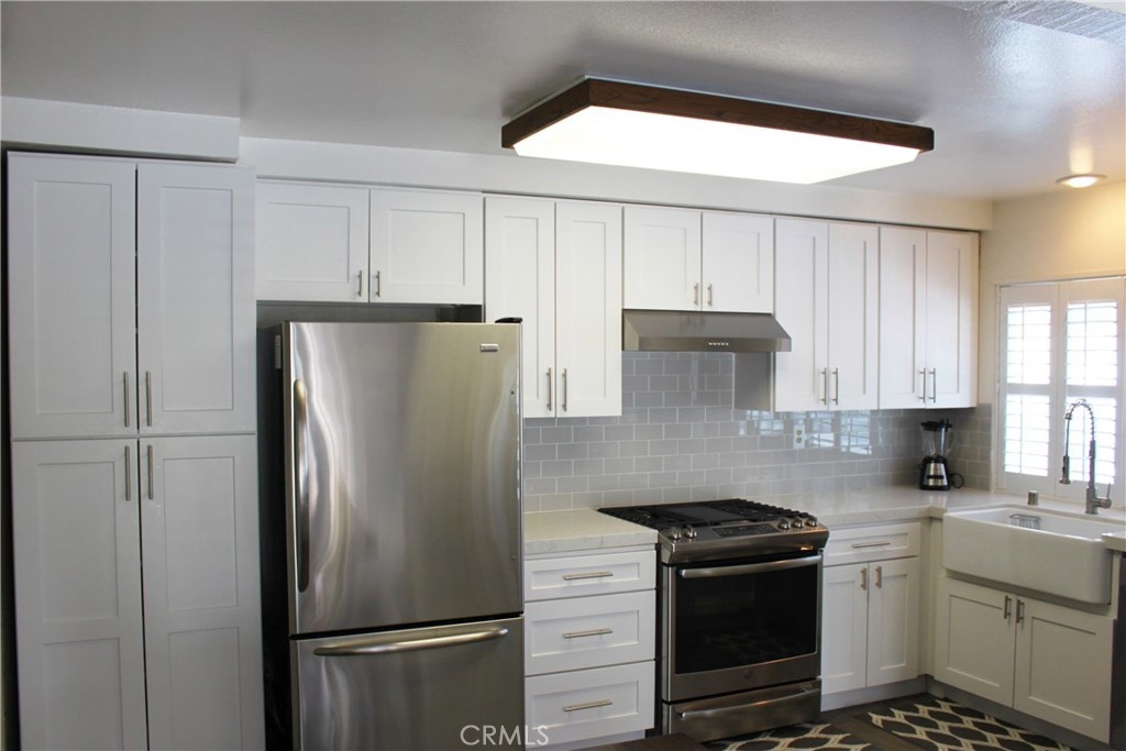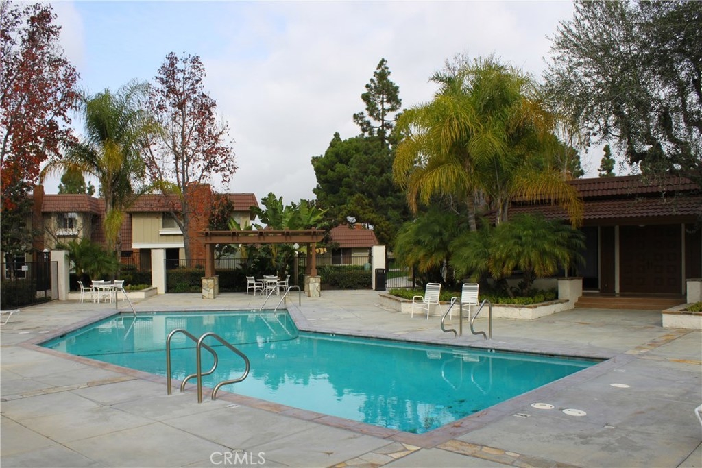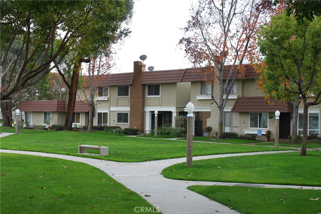 Secluded single level townhouse in popular Cypress Village. Lots of upgrades and move-in ready. Over 1,200 square feet on one level with 2 very large bedrooms and 2 bathrooms. It has a custom remodeled kitchen, quartz countertops, newer appliances, dual pane windows and sliding glass door, scraped ceilings, wide baseboards, gorgeous Pergo laminate (wood-look) flooring throughout, plantation shutters, fireplace, central air conditioning, forced air heating, private patio, and 2 car garage. Master bedroom has 2 large wardrobes. There is indoor laundry and much more. Located at the south end of Cypress by Valley View and Orangewood, the complex has 3 swimming pools, 3 clubhouses, kiddy pool, Tennis courts, beautiful walking paths with lush landscaping and was built by S and S Construction. Schools are Pacifica High School, Bell Intermediate School and Patton Elementary School. It is located near the 405, 22 and 605 freeways.