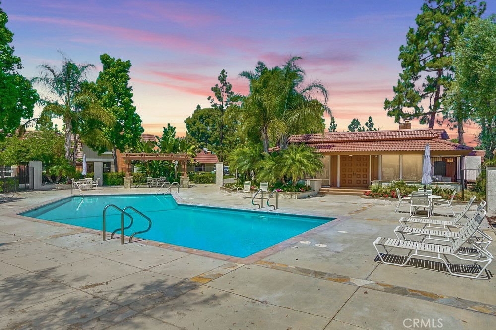 RARELY ON THE MARKET! COMPLETELY REMODELED SINGLE-STORY END-UNIT IN CYPRESS VILLAGE! This property is in a highly-desirable, quiet interior-tract location with plenty of parking just steps from the front door. This gorgeous three-bedroom, two-bath townhome offers its new residents a spacious and versatile floor-plan with multiple entertaining spaces. Through the front door is a spacious living area with lots of natural light, gas fireplace with glass enclosure, ceiling fans and a spacious dining area. The beautifully updated kitchen features custom white-shaker cabinets with soft-close doors and drawers, black handles, quartz counters, under cabinet and recessed lighting on dimmers and dual-basin composite sink with black pull-away faucet and soap dispenser. A suite of modern Whirlpool stainless-steel appliances are included. The refrigerator has been relocated to open the kitchen up for more space and cabinetry, which includes a coffee bar with pull-out drawers. Other notable upgrades include LVP flooring, new baseboards, all dual-paned windows and sliders, retextured ceilings, crown molding, new plugs and switches on dimmers, and plantation shutters throughout, that fill the home bringing in elegance. The large master-suite features a slider that leads out to the patio, high-end carpet, and 2 closets, one of which has been completely redesigned with white shakers and gold pulls, featuring 7 cabinets and 6 drawers, including a built-in laundry basket. The master bathroom also features new cabinets with quartz counters, dual-sinks, new mirror, 2 medicine cabinets, porcelain tile flooring and shower with shampoo niche in a gold hexagon accent tile. All three bedrooms have ceiling fans along with AC and heat. Outdoors you will find space for endless hours of entertainment in the garden backyard. The detached two-car garage offers shelving and a workbench just waiting for your tools or crafting supplies to be put to good use. Cypress Village has plenty of beautifully landscaped common greenbelt areas, trees and peaceful walkways throughout the community. There are 3 pools & clubhouses, oversized jacuzzi, kiddy pool and tennis court, all managed by the HOA! Access the 22/405/605 freeway, shopping centers, LA Fitness, businesses, top-rated 9-10 schools, Costco and even the new Trader Joe’s all within minutes of your front door - how convenient! Welcome home!