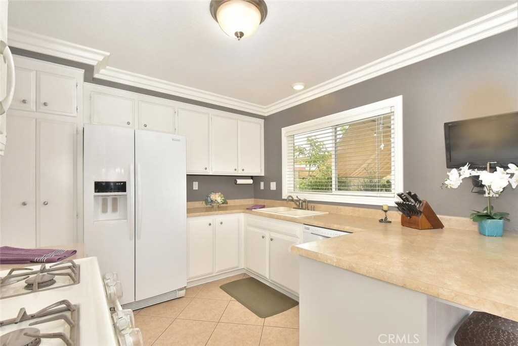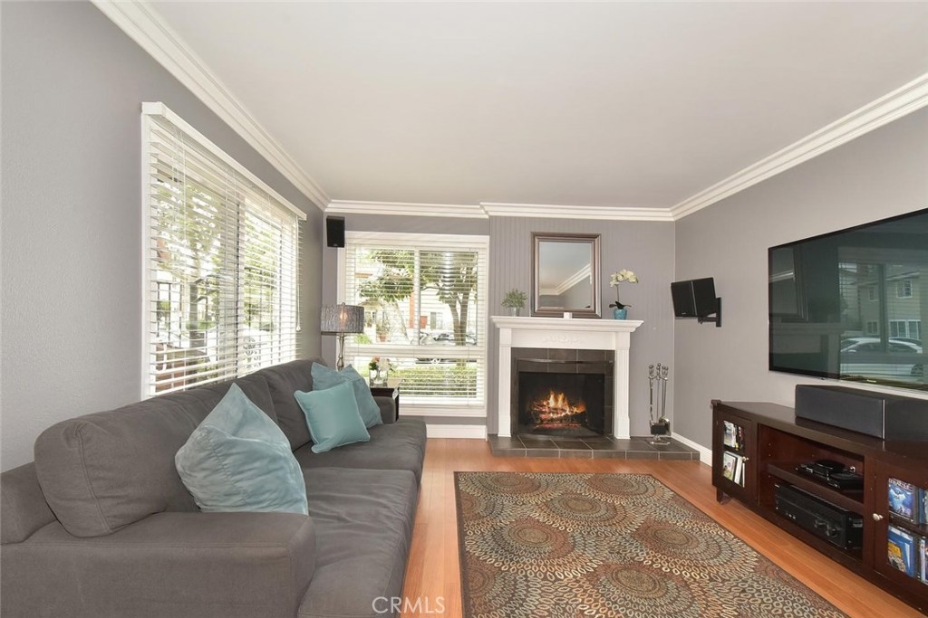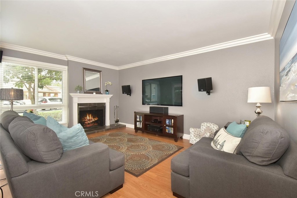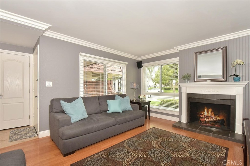 FABULOUS, FULL OF UPGRADES, & GREAT LOCATION ON A GREENBELT IN THE AMAZING COMMUNITY OF CYPRESS VILLAGE! A charming enclosed courtyard welcomes you home to this popular 2 bedroom model. An absolutely lovely living room awaits w/a gorgeous remodeled fireplace, big windows for plenty of sunshine, attractive laminate flooring & elegant crown molding. The stylish theme is carried into the large dining room w/more crown molding, crystal lighting & a lovely view of your private patio. You'll enjoy plenty of space in the light & bright kitchen w/gas stove, quality appliances, breakfast bar & tile flooring. Be sure to notice the upgraded wood banister & remodeled powder room before heading upstairs to the huge master bedroom that boasts beautiful interior design w/crown molding, recessed lighting & walk-in closet! More upgrades in the attached bath w/new tub & shower re-glazing & a substantial guest bedroom w/recessed lighting & tree views! Additional features: Dual pane windows & sliders, wide blinds, smooth ceilings, 2 panel doors w/upgraded door casings, ample storage & linen space, inside laundry room, almost new a/c & furnace, brand new water heater, wired for surround sound, large low maintenance patio w/pergola & block walls, & awesome finished 2 car garage complete w/recessed lighting & cabinetry. Wonderful Cypress Village was built by S & S & has 3 Pools, 3 Clubhouses, a Huge Spa, Kiddy Pool, Tennis Court, Lush Greenbelts w/Meandering Walking Paths & Low HOA of $270 monthly!