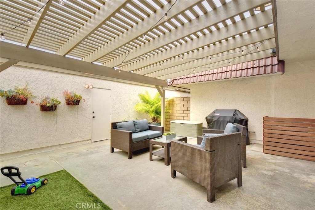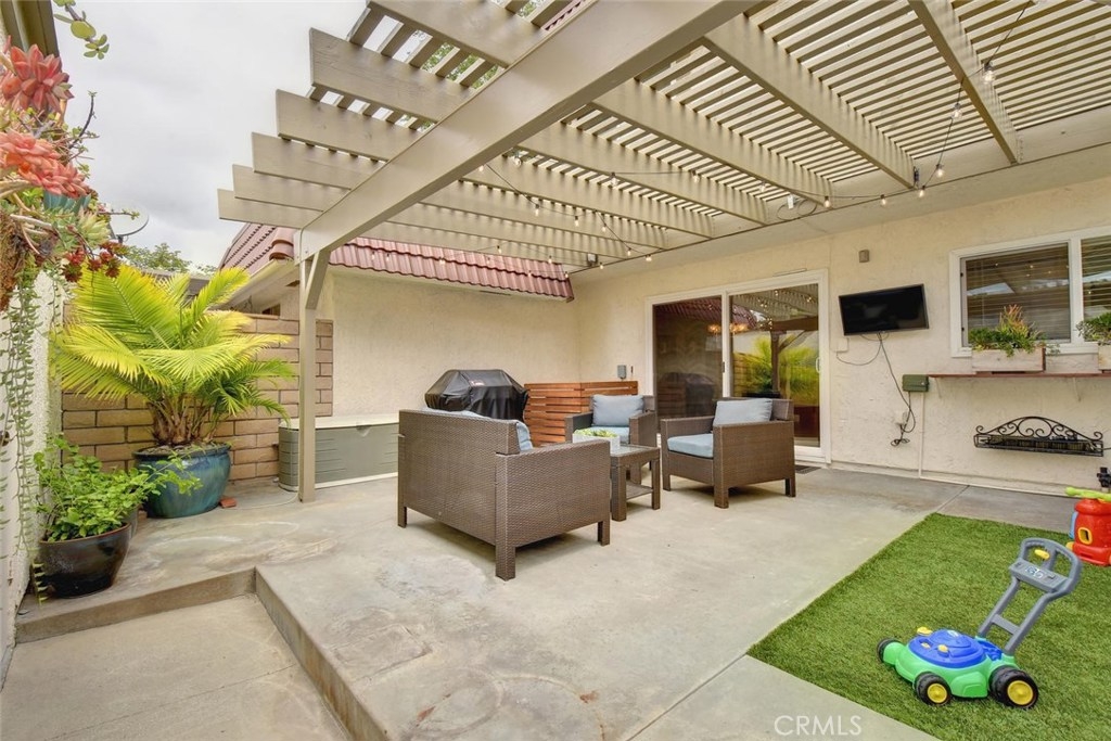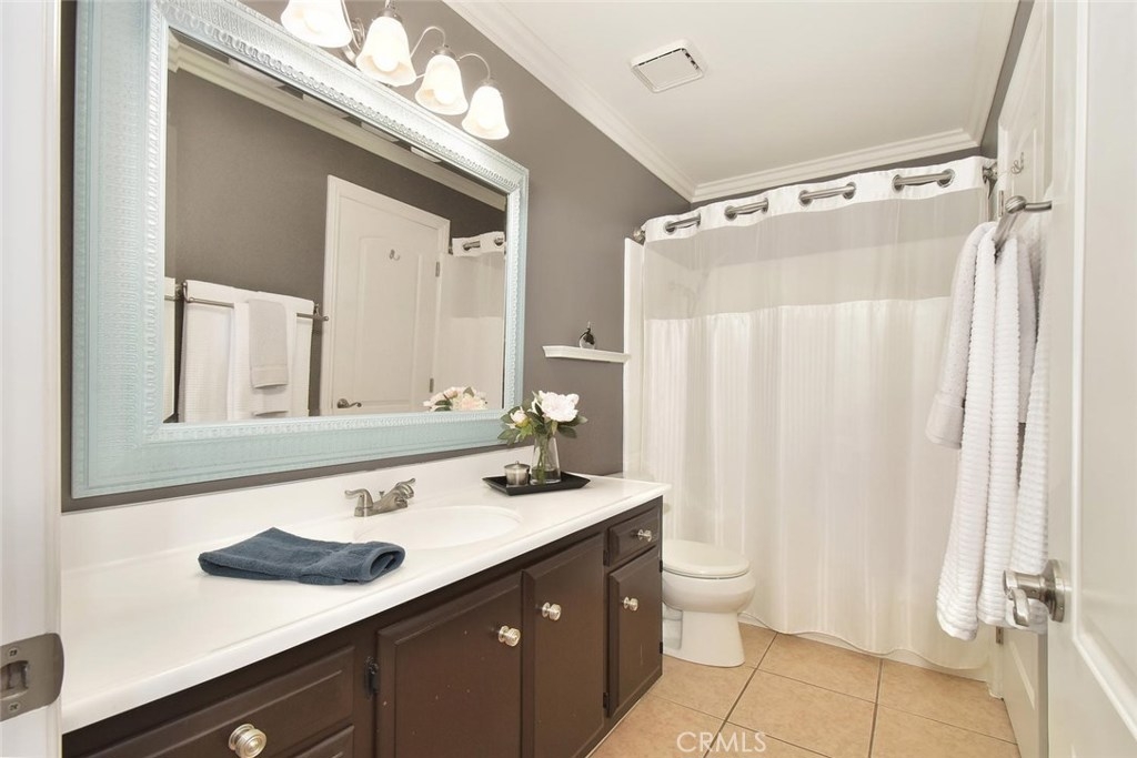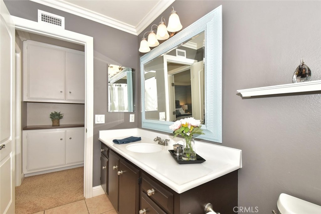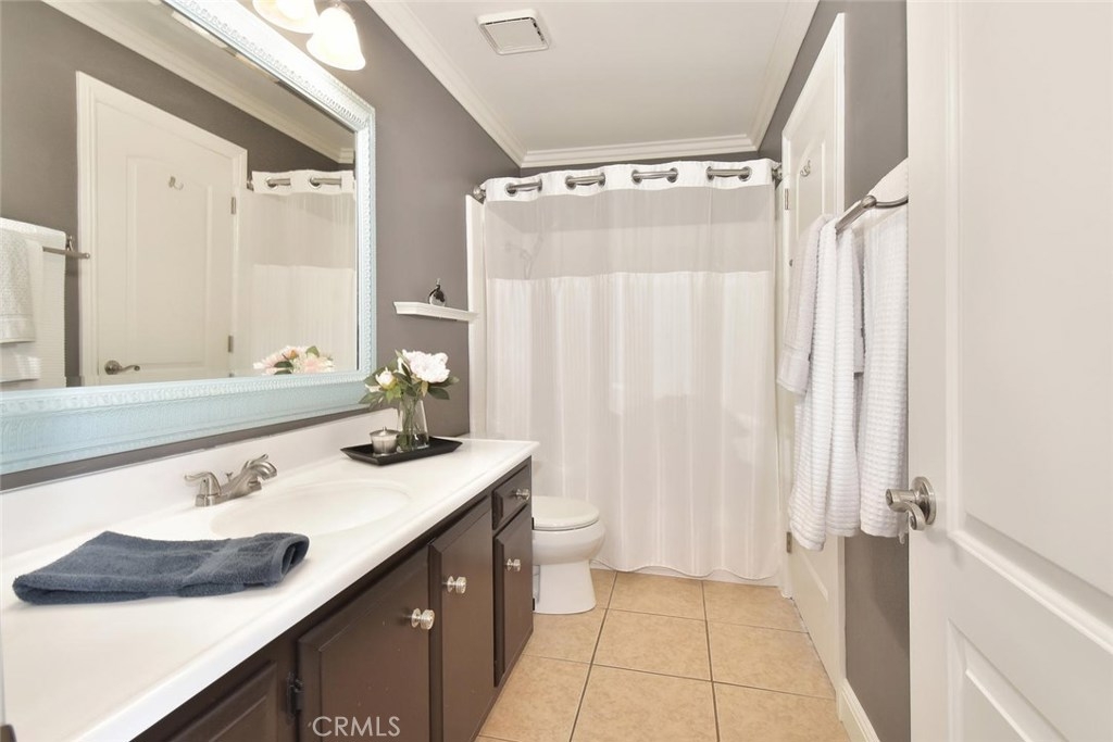 FABULOUS, FULL OF UPGRADES, & GREAT LOCATION ON A GREENBELT IN THE AMAZING COMMUNITY OF CYPRESS VILLAGE! A charming enclosed courtyard welcomes you home to this popular 2 bedroom model. An absolutely lovely living room awaits w/a gorgeous remodeled fireplace, big windows for plenty of sunshine, attractive laminate flooring & elegant crown molding. The stylish theme is carried into the large dining room w/more crown molding, crystal lighting & a lovely view of your private patio. You'll enjoy plenty of space in the light & bright kitchen w/gas stove, quality appliances, breakfast bar & tile flooring. Be sure to notice the upgraded wood banister & remodeled powder room before heading upstairs to the huge master bedroom that boasts beautiful interior design w/crown molding, recessed lighting & walk-in closet! More upgrades in the attached bath w/new tub & shower re-glazing & a substantial guest bedroom w/recessed lighting & tree views! Additional features: Dual pane windows & sliders, wide blinds, smooth ceilings, 2 panel doors w/upgraded door casings, ample storage & linen space, inside laundry room, almost new a/c & furnace, brand new water heater, wired for surround sound, large low maintenance patio w/pergola & block walls, & awesome finished 2 car garage complete w/recessed lighting & cabinetry. Wonderful Cypress Village was built by S & S & has 3 Pools, 3 Clubhouses, a Huge Spa, Kiddy Pool, Tennis Court, Lush Greenbelts w/Meandering Walking Paths & Low HOA of $270 monthly!