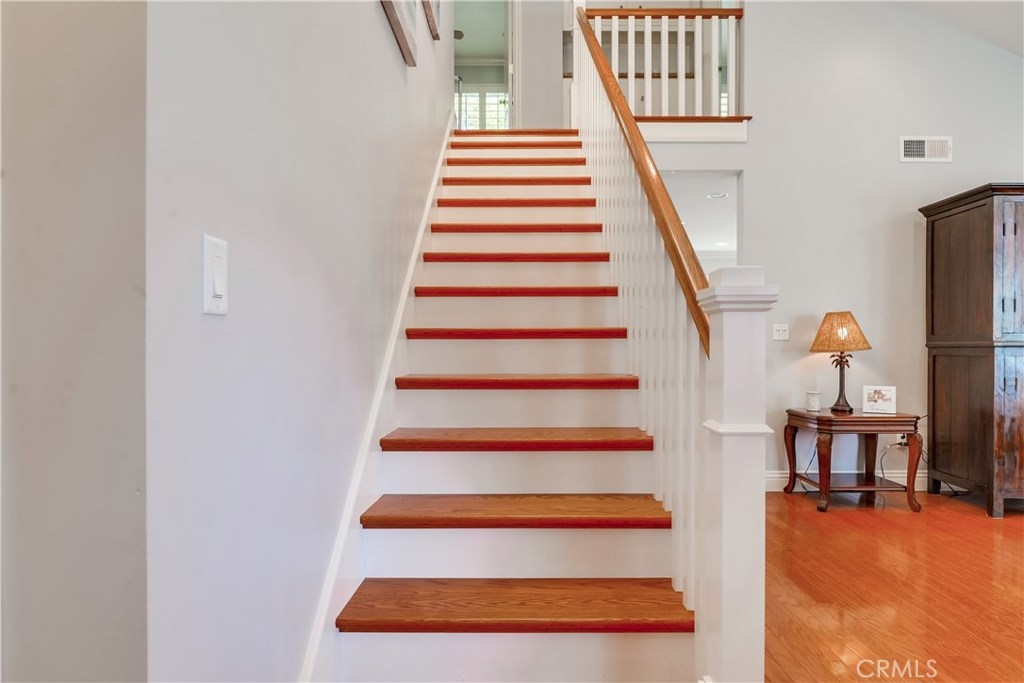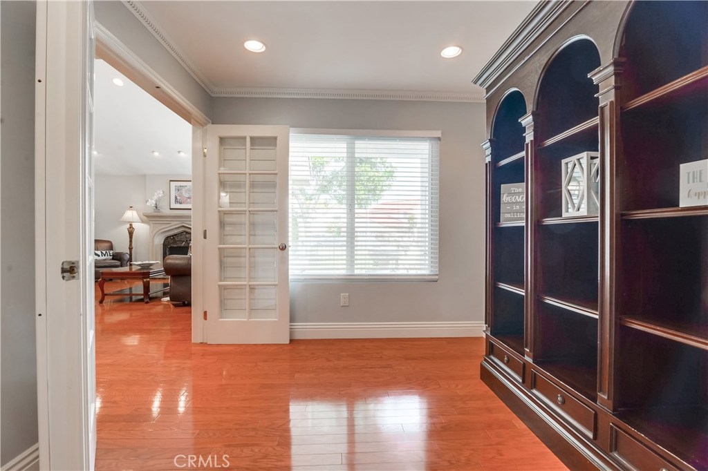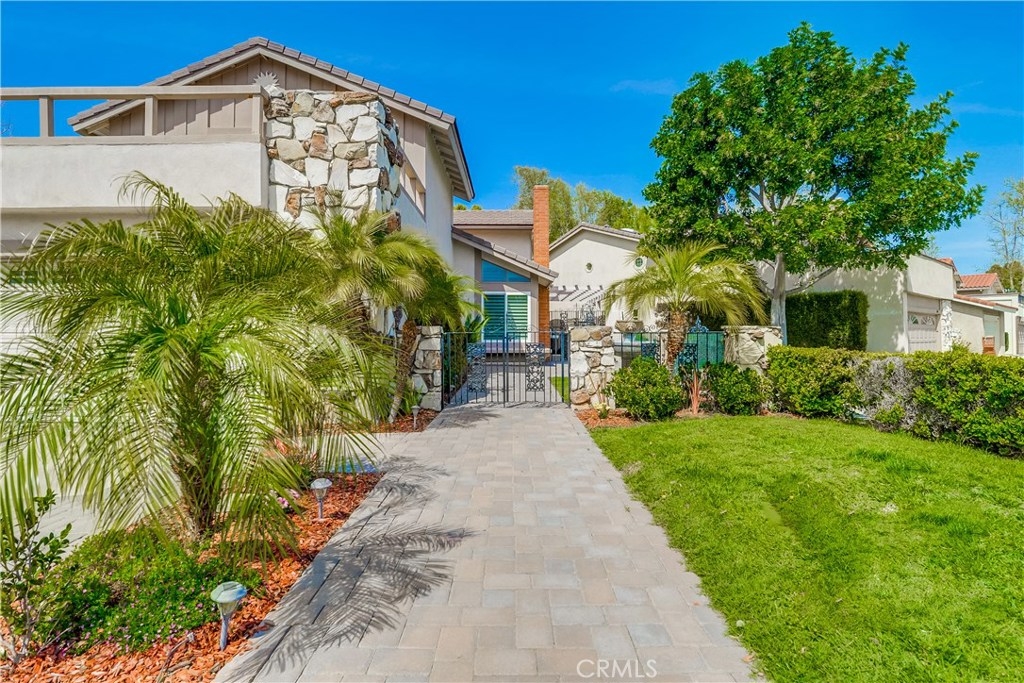 Beautifully maintained Cypress Village Bedford Model!! Create the perfect place to entertain your friends and family on this large front patio, accessible from the side-yard gate which comes complete with an outdoor barbeque Island! Inside you will find stunning, vaulted ceilings, warm and well-maintained oak hardwood flooring, gorgeous crown molding and newly updated dual pane windows. The fresh paint will go well with any décor and is perfect for a move-in ready family. The downstairs den would make the perfect home office or 4th bedroom. The open layout of the home leads you to the kitchen and dining space, which comes with commercial grade appliances (Thermidor Chef) beautiful cabinets, granite countertops and a separate laundry room off the kitchen. Just off the dining area are gorgeous French style patio doors opening to the side yard, perfect for the party to move outdoors on a sunny day! Off the downstairs den is an updated powder room for your guests. Upstairs you will find a spacious master suite (with a beautiful balcony!), fully updated master bath and 2 additional bedrooms with a separate updated bath. New roof in 2017, HOA to repaint exterior this summer. Don’t miss this opportunity to live in Cypress Village with access to community Pools (3!!), large spa, kiddy pool, his/her suanas and several greenbelts and tennis courts!! All of this in an award winning school district all rated 9-10’s!! Fresh exterior paint coming in May 2019 and choose your new color!