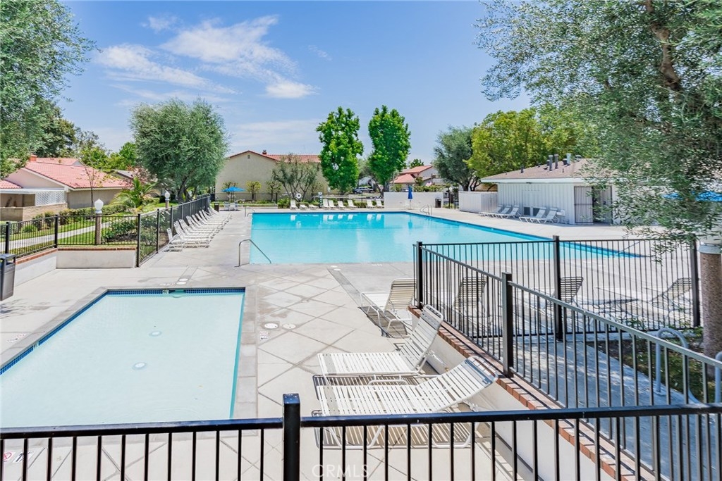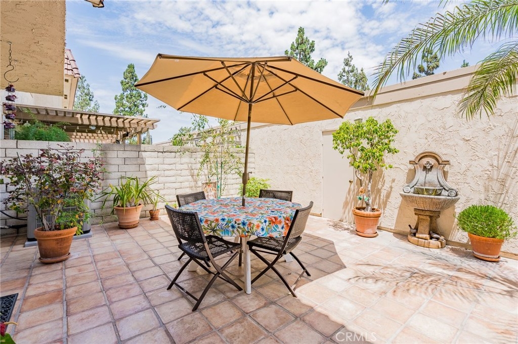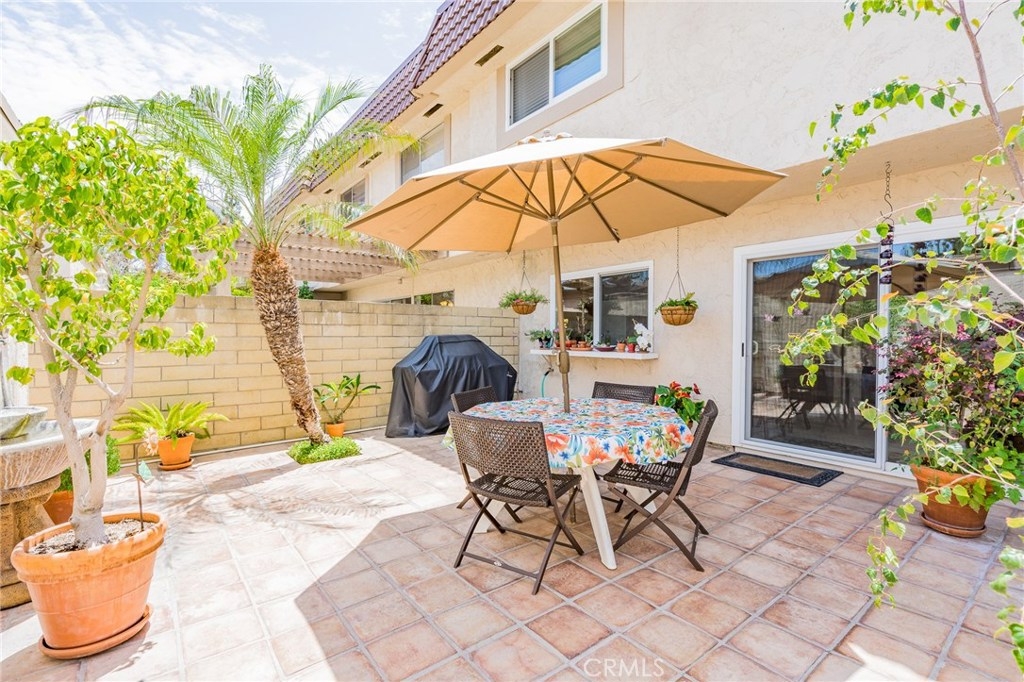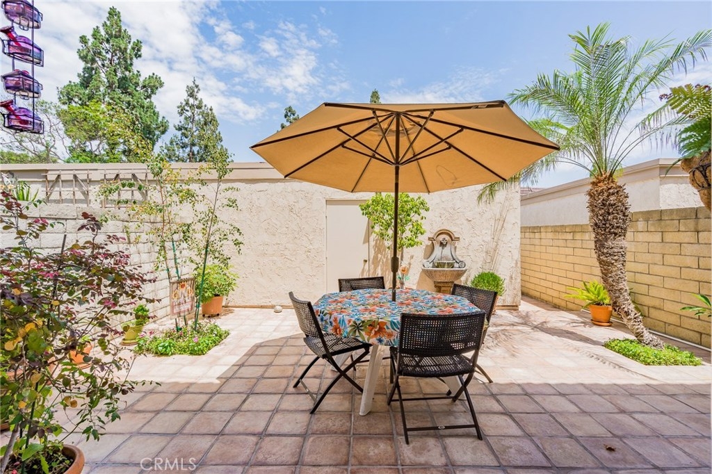 Top Notch Community and the prestige of “Cypress Village Gardens” Shows like a model home! Turnkey! Light, bright, & open floor plan! Hear the peaceful & relaxing sounds from the water fountain from the back patio. Large open kitchen includes a newer dishwasher and gas stove, granite counter tops with a gorgeous bay window overlooking the back patio. Laundry room off kitchen. Large master bedroom with walk in closet and attractive ceiling fan. Upstairs Remodeled bathroom offers large vanity with newer sink and toilet. Romantic fireplace in the living room. Tile flooring throughout the downstairs, Designer paint, Sliding door leads out to the nicely landscaped private back patio with terra cotta tile. Gas hookup for BBQ. You will feel like you are on vacation every day in this resort like setting. Great for entertaining and relaxing. This home is ready for you to move in today! Stop looking around, you can have it all with this home. Offers most everything you and your family could want and need. With 3 pools, the main pool is Olympic size, tennis court, 3 clubhouses, his and her saunas, spa, kiddy pool, billiard room, banquet facilities, multipurpose room not to mention greenbelts in park setting with tables, grass, trees and walking paths! Great for kids and family gatherings.