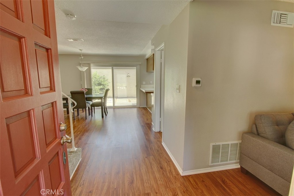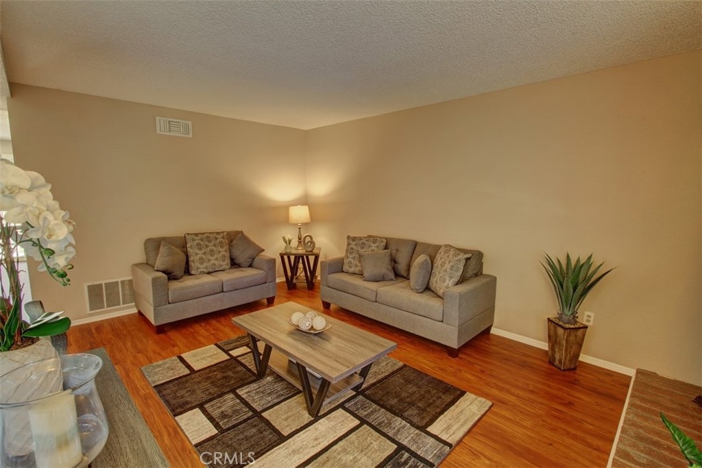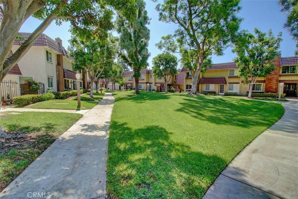 WELCOME TO CYPRESS VILLAGE!! A must see home.... Award-winning local schools. Patton Elementary, Bell Intermediate and Pacifica high school. highly rated. (buyer to verify) Two bedrooms. One and half bathrooms updated. Big master bedroom with walk-in closet that could be divided into two bedrooms. Living room with fireplace. Newer windows, window blinds, slider door, interior doors, water proof flooring in living room dining area and bathrooms. Carpet flooring upstairs in bedrooms and hallway (approximate 4 years ago) Garage completely dry walled with deep storage cabinets. Security gate to back yard. Central air and heating, Inside laundry located next to kitchen. Two solar tubes upstairs. Refrigerator and stove included with property. Air and furnace units approximate 4 years old. Relaxing outside patio with access to a two garage. Quiet location and beautiful green belt in the front yard. Guest parking and additional street parking. Three pools and club houses in the complex and tennis court. Close to shopping and easy access to freeways. Approximate 6.5 miles from Disneyland