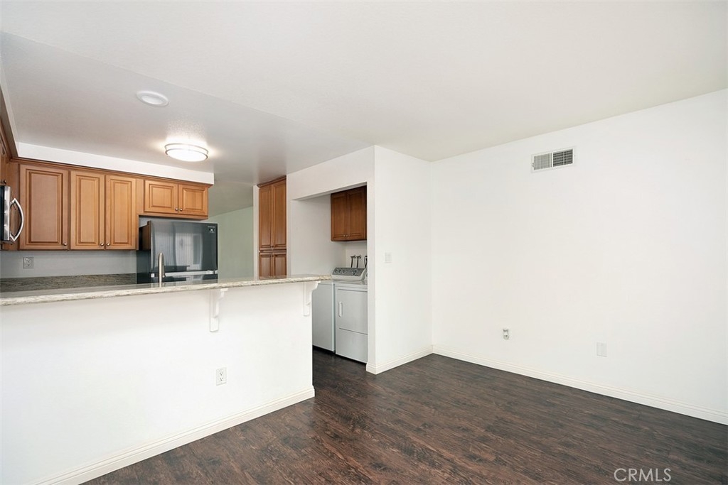 Welcome to this charming 2 bedroom/1.5 bathroom townhome in Cypress Village Gardens. This is a bright desirable end unit with large rooms in this single level floor plan. This property just had a remodeled kitchen with granite counters and all new stainless steel appliances. The new expensive cherry cabinets are in perfect condition. The bathrooms have also been updated. The property feels spacious with a large family room/ dining room. This room also has a fireplace which can burn wood or gas. The window coverings include plantation shutters which are in perfect shape. The kitchen is good size with a breakfast area and dark wood floors. Just out the kitchen sliding door is a nice courtyard which captures the afternoon sun. The ceilings have been scaped with a texture finish. This unit also has a detached large two car garage with plenty of storage space adjacent to the courtyard. A large size washer and dryer are included and located inside the unit. The owner never smoked and never had any pets. He was very clean and kept every part of this unit in perfect working order. The plumbing was been upgraded to pex piping, so there will never be a slab leak in the floor. This is a turn key property and the new buyer would not have to do any upgrades. The HOA includes maintain of the common areas, pool, tennis courts, clubhouses and spa hot tubs. This is a very quiet and safe neighborhood within award winning school districts. Centrally located in the heart of Orange County and close to three airports, LA, Long Beach and OC Airport. Easy access to numerous freeways to travel in any direction. This is perfect for the first -time home buyer or empty nester looking to down- size with no yard maintenance. This super clean property will not last long on the market.