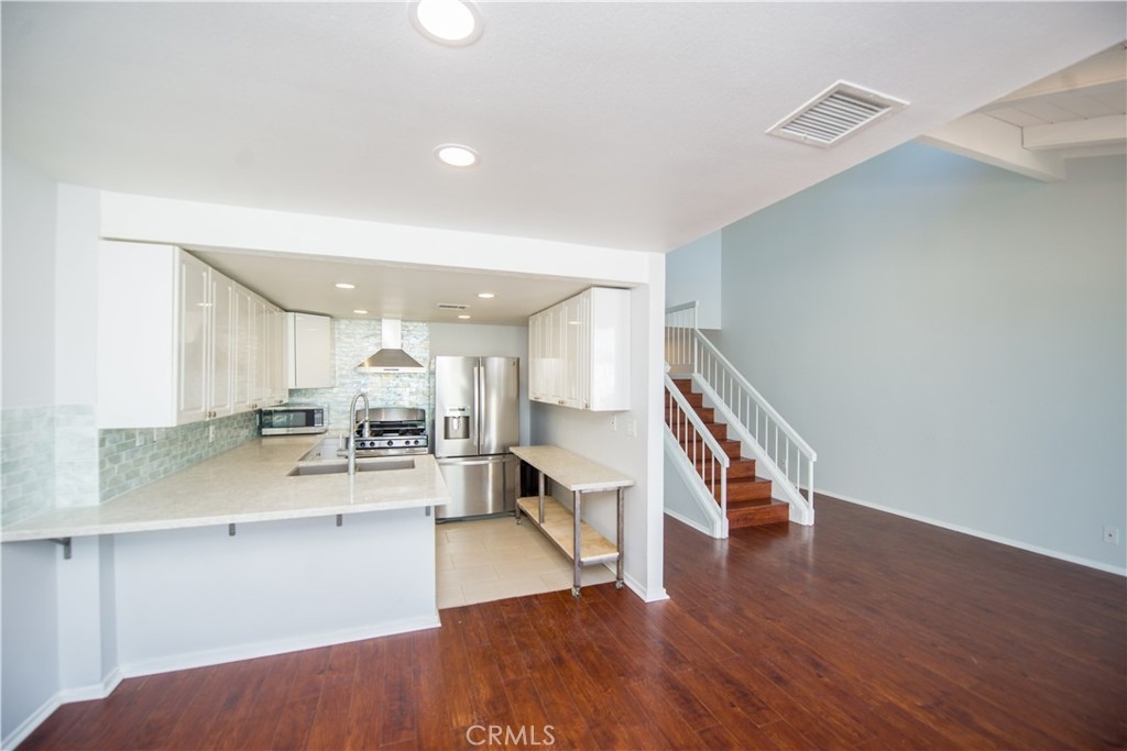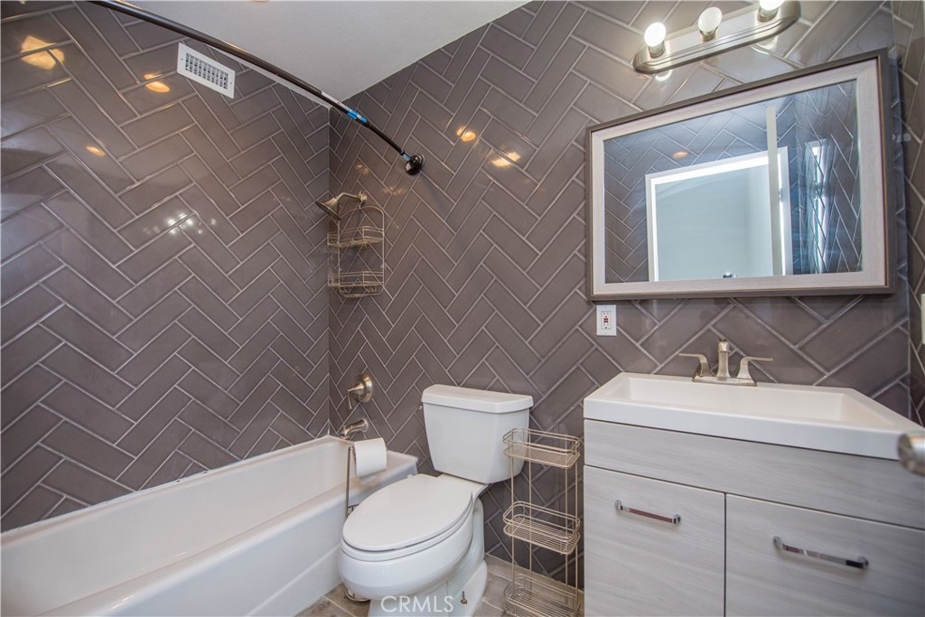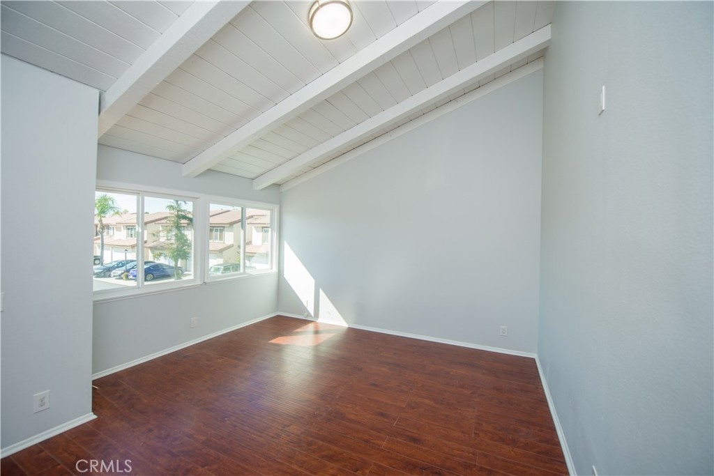 Welcome home to the quaint community of Cypress Villas. This property is an end-unit home with only 1 attached wall and is conveniently located near the community pool and spa. This home is spotless and updated throughout! As you step in the front door you’re greeted by an abundance of natural light pouring in through the updated double-pane windows. You will find distressed laminate wood flooring running through most of the home along with tile in the kitchen & bathrooms. As you enter further, you will find the family room complete with soaring wood-beamed ceilings along with a sliding glass door which leads to the private and enclosed patio area, perfect for entertaining. The kitchen has been fully remodeled including quartz counters, designer backsplash, white cabinets, stainless appliances, a breakfast bar and a deep-basin double sink, ideal for the chef of the family. Head upstairs where you will find both bedrooms. The master suite offers wood-beamed ceilings along with a large walk-in closet and a nicely remodeled bathroom with a walk-in shower. The guest bedroom is large and offers recessed lighting and mirrored closet doors. The secondary bathroom is also fully renovated with chevron pattern tile on the walls and wood look tile on the floor. To complete this property you’ve got a brand-new heating & AC system, newer water heater, an attached 2-car garage, and a long driveway, where you can park 2 additional cars! Come see this one quickly, as it won’t last long!