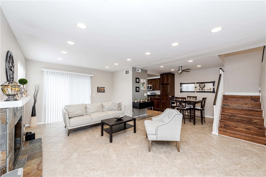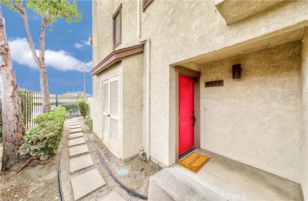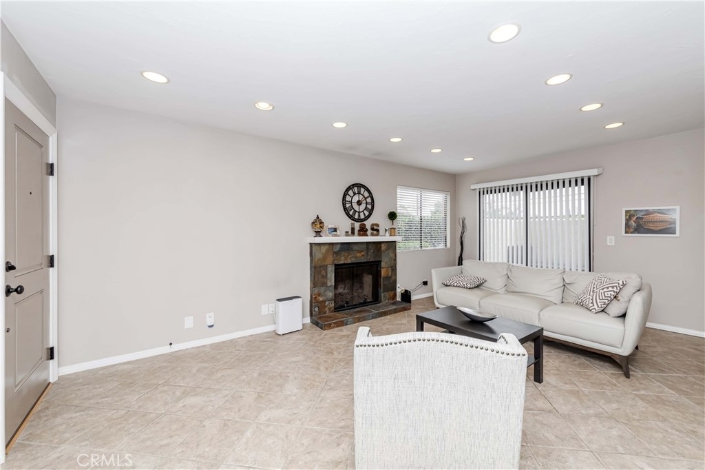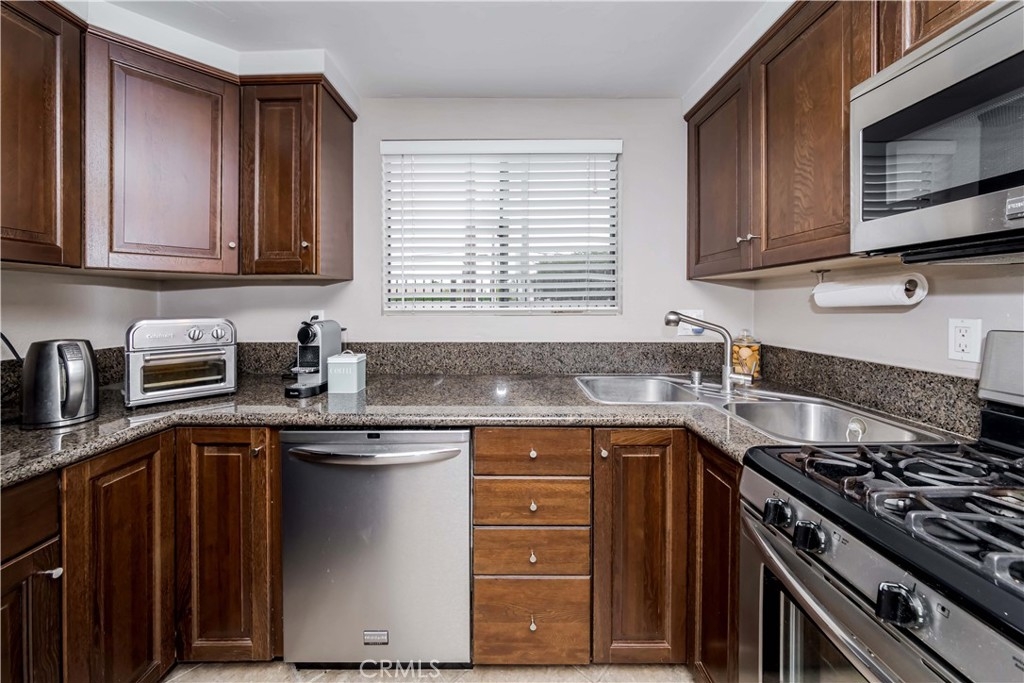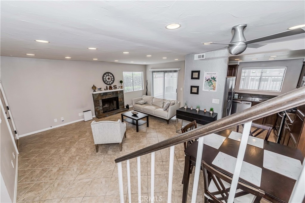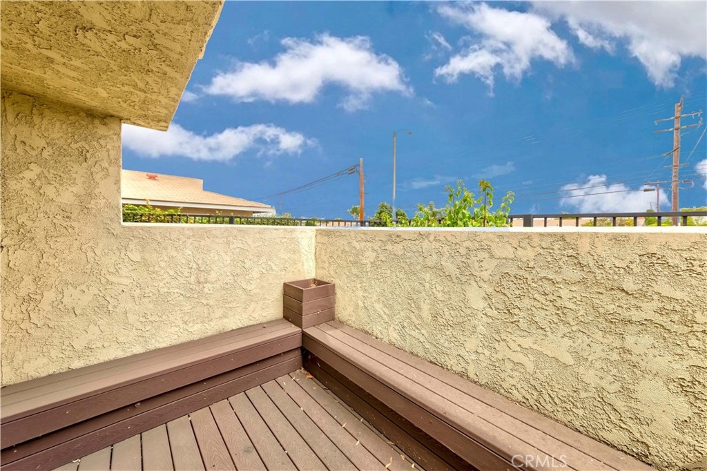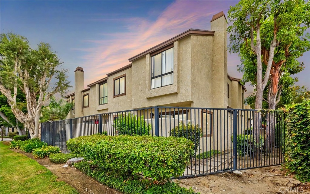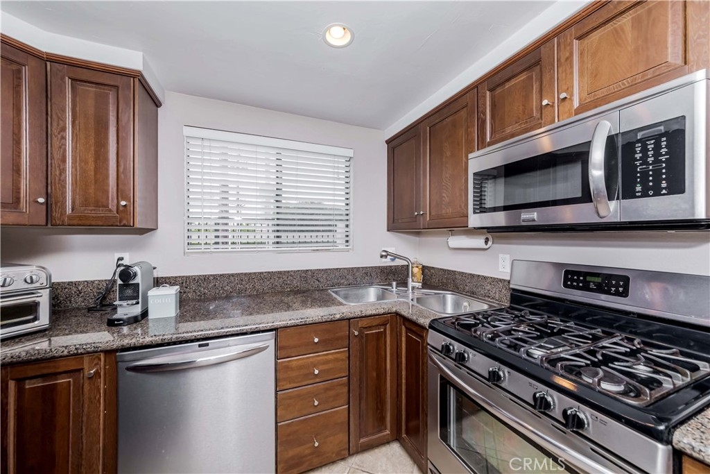 Beautifully remodeled 2-story townhouse situated in the sought-after Embassy Park gated community. As a spacious end-unit, it offers 2 bedrooms, 1.5 baths, a private patio, and a 2-car attached garage with direct indoor entry. The modern kitchen features recessed lighting, sleek cabinetry, granite countertops, and stainless steel appliances, including a range oven, dishwasher, built-in microwave, and refrigerator. The first floor boasts recessed lighting, a ceiling fan, stone tile flooring, and a custom gas fireplace. The living area opens to a private patio with custom decking. Upstairs, a skylight fills the space with natural light, highlighting the wooden flooring on the stairs and second level. The generously sized primary bedroom offers mirrored closet doors & vaulted ceilings. Both bathrooms have been tastefully upgraded with designer finishes. The washer and dryer are included & laundry area is conveniently located in the oversized garage. Enjoy the security of a gated community, a sparkling association pool, and ample guest parking. Highly rated schools include King ES, Walker JH/Oxford Academy, and Kennedy High/Oxford Academy.