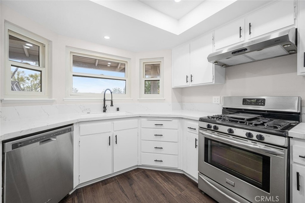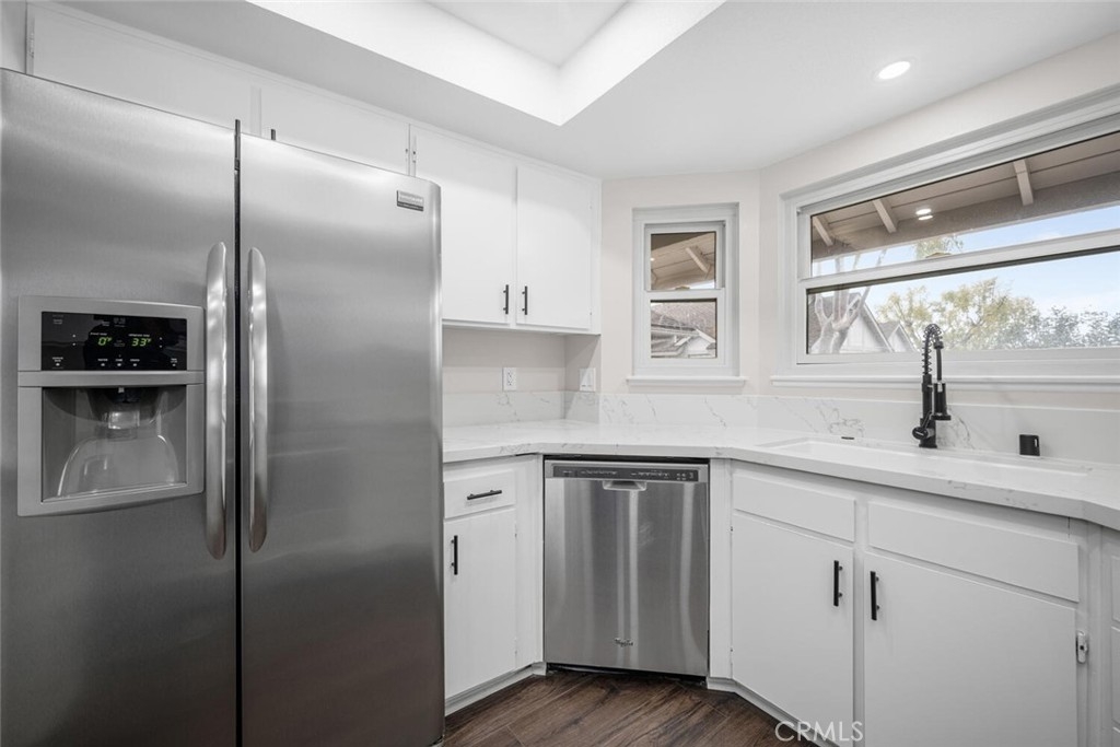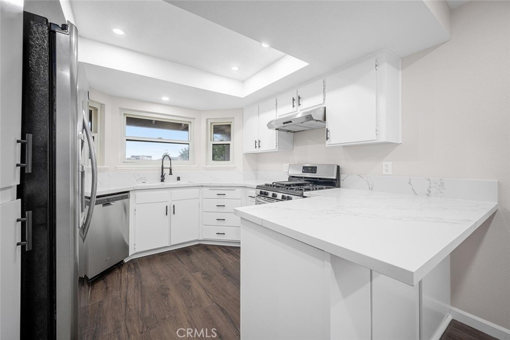 Welcome to the Tranquil Community of the Influential Townhomes Freshly painted and beautifully upgraded, this charming 2-bedroom townhouse is situated in a quiet, serene complex surrounded by mature trees and breezy pathways. The inviting living room features a cozy fireplace, while desirable waterproof vinyl laminate flooring flows throughout the home. The updated kitchen boasts stunning new quartz countertops and includes a gas range, refrigerator, and dishwasher. The remodeled bathroom adds a modern touch, and the spacious primary bedroom offers a walk-in closet and a remodeled separate vanity area for added convenience. Enjoy year-round comfort with central heating, air conditioning, dual-pane windows, and recessed lighting. Step outside to relax or entertain on the expansive exterior deck. This home includes a single-car garage and an additional carport space. Residents can take advantage of the community's HOA amenities, including a pool and spa. Located in a top-rated school district and close to parks, shopping, and public transportation, this home offers the perfect balance of comfort and convenience.