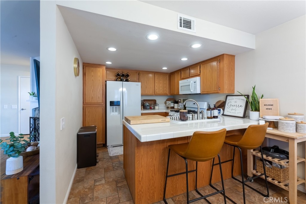 Welcome home to this beautiful 2-bedroom, 2.5-bathroom Cypress townhome. A low-maintenance enclosed patio, with plenty of room for a BBQ and entertaining, leads into the home with its spacious living room complete with gas fireplace and durable tile floors. The kitchen features crisp white appliances and tile countertops and a breakfast bar that opens to the dining room. Finishing off the first floor is a powder bathroom and the indoor laundry room with direct access to the garage. Upstairs, both bedrooms have private en-suite bathrooms. The Primary Bedroom includes a spacious nook perfect for a sitting or office area with large sliding doors that open to a small balcony overlooking the courtyard. A large walk-in closet and secondary closet lead into the bathroom with dual sinks on the vanity and a walk-in shower. Other special features: Central heating and AC with Nest Thermostat, plantation shutters throughout and plenty of storage. The 1-car garage is fully finished and air conditioned with epoxy flooring and wired with a 240 Volt NEMA 14-50 Tesla Charger. One additional assigned parking space in a nearby carport as well as ample guest parking. The Influential Townhomes Complex features a community pool and spa, mature trees, and lush landscaping with close proximity to award winning schools, public parks and shops and dining.