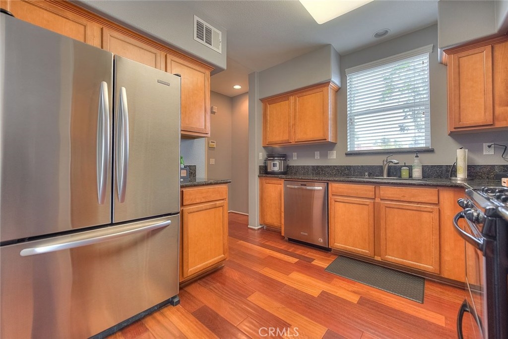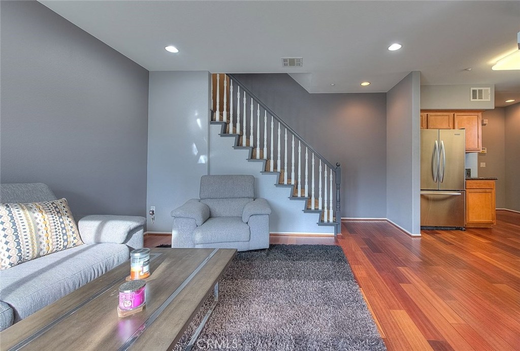 Beautifully upgraded home in the Lincoln Square Community in Cypress! This end unit townhouse has a spacious feel with over 1800 Sq.Ft. of living. Walk into this open lovely home with recessed lighting and hardwood flooring. The kitchen features granite countertops, maple cabinetry and a formal dining room. Upstairs you'll find all of the bedrooms including a Master Bedroom with a walk in closet and attached Master Bathroom. Enjoy the spectacular bonus room on the 3rd floor perfect for a guest room, home office or gym. The choices are limitless! This 2007 built community with low HOA dues features an attached 2 car garage, private front porch area, dual pane windows, tankless water heater and newly painted interior. Enjoy the beautifully maintained gated community of Lincoln Square featuring swimming pool, spa and picnic area. With close proximity to shopping, restaurants and access to excellent school districts this is the perfect place to call home!