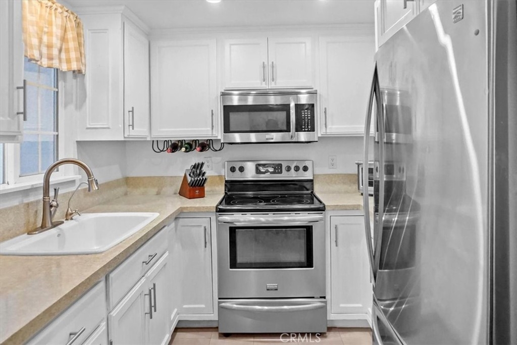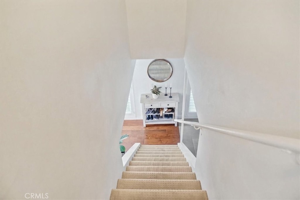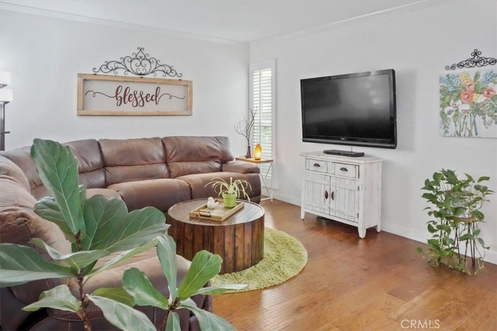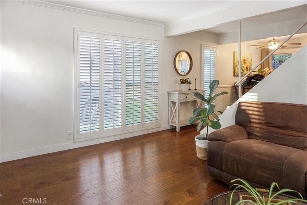 WELCOME HOME! Finally a chance to own an affordable 4 bedroom 2.5 bath home in the award winning Los Alamitos School District. This property is loaded with upgrades and amenities. Downstairs you are welcomed with genuine hickory wood flooring in the living room, crown moldings and plantation shutters. The kitchen has recessed lighting, quartz counter tops, porcelain tile flooring, ranch style sink and upgraded cabinets. The entire house has been freshly painted and comes equipped with new baseboards. Stainless steel appliances are available in the kitchen and in the garage you will find a brand new washer and dryer. Upstairs is four spacious bedrooms for your growing family. Two full bathrooms upstairs with brand new vanities and hardware. In the master bedroom you can enjoy a partial mountain view. I almost forgot to mention that all the windows were recently replaced. The improvements are to many to list. Outside you will enjoy a nice private patio and quiet retreat. This property is nestled far inside the complex, is very secure, and has one of best locations in the community. Enjoy the greenbelts that run through the complex and take advantage of community pool and Cabana. The garage has ample room for storage and has two garage doors so you can close the carport and garage separately and has an extra assigned parking space right in front of the unit. Walking distance to elementary, middle and Los Alamitos High. Please call to schedule a showing soon. This one will not last long.