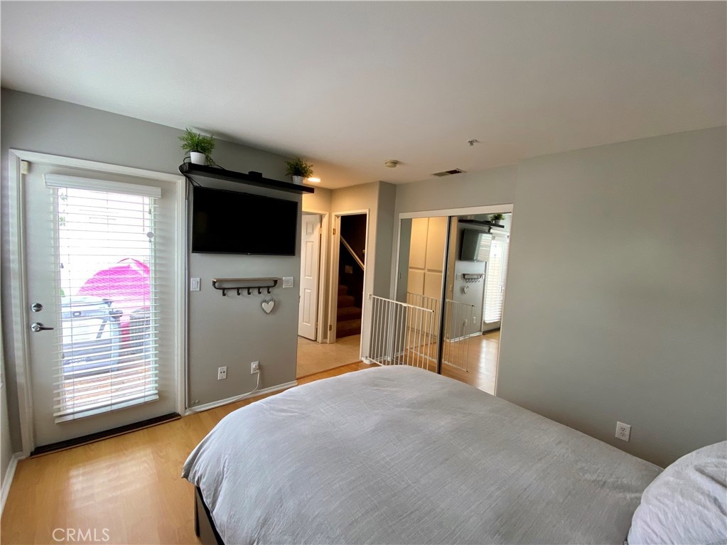 Spacious town home style condo, situated on the border of Cypress and La Palma. Large open living areas with vaulted ceilings, both bedrooms connect to bathrooms, and there's an attached two car garage. While the address is "Moody" a main street, this unit sits snugly off the street in a small quiet complex, where kids can often be found playing and riding bikes care-free of traffic. When entering from the garage, you'll find the first bedroom, bathroom with shower, and entrance to the back patio. Up the stairs, or from the front door, you'll find the open living space that includes the dining area, living room, and kitchen. Here you'll also find the large second bedroom, and full bathroom, complete with a separated 2-sink vanity area.