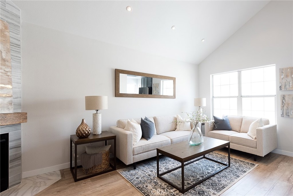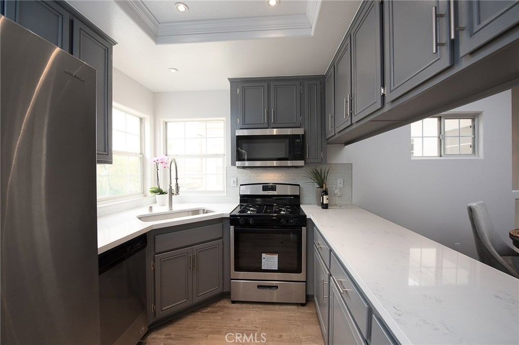 Revel in the up-grades that have made this household a home. As you open the door, you are greeted by beautiful distressed high-end laminate flooring that flow through out this magnificent home. The living area offers a sophisticated approach to today’s living, with a stunning floor to ceiling tiled fire place, reclaimed 1903 barn wood mantel and recessed lighting throughout. The kitchen is topped off with stainless steel appliances, quartz counter tops and a breathtaking backsplash. The bedrooms both offer master suites with new cabinets, quartz counter tops, and tile. Central air, heat, award winning schools, low HOA fees... what’s not to love? This exquisite home has been remodeled from top to bottom. First come, first serve.