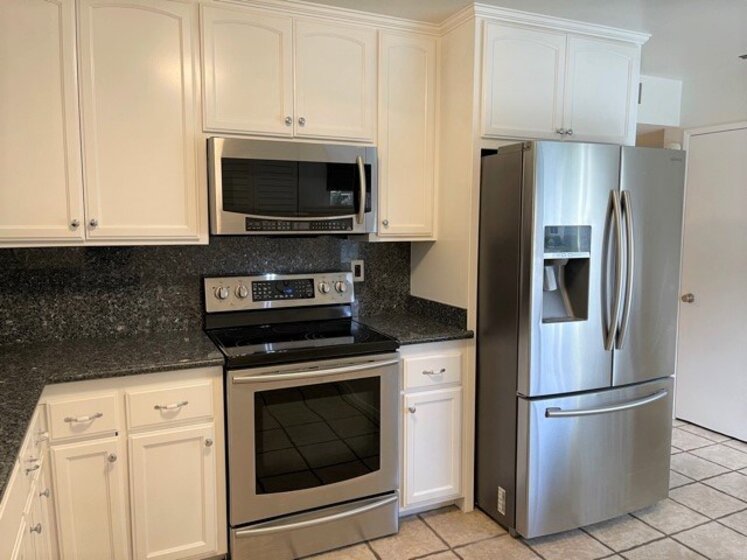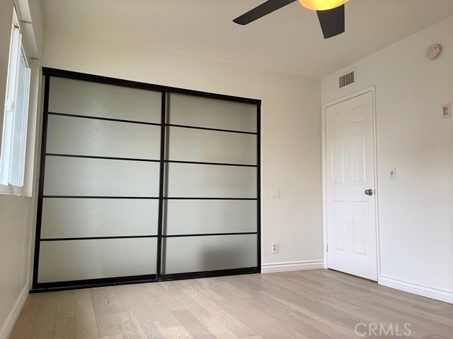 RARE FIND! DOWNSTAIRS UNIT! Don't miss this Cypress condo that is priced to sell. Double-paned energy efficient windows and patio slider, recessed lighting in the hallway and living room, gorgeous blue pearl granite countertops in the bathroom and kitchen, with a beautiful granite backsplash. All newer Samsung stainless steel appliances including range, refrigerator, dishwasher, microwave, washer and dryer. Ceiling fans in both bedrooms and kitchen, custom kitchen booth with custom upholstery and storage under benches. Livingroom wall AC unit, engineered wood floors in the living room and bedrooms, designer closet organizers and drawers in both bedrooms. New paint throughout entire condo. Large storage closet on the side of patio and a beautiful outdoor patio ready for summer BBQs. 2 Parking spots inside security gate, where you can enjoy the pool and club house. Gated community, close to shopping, freeways, parks, and top rated Cypress schools.