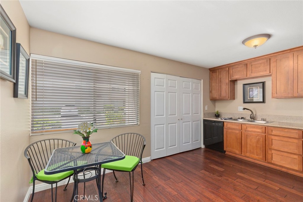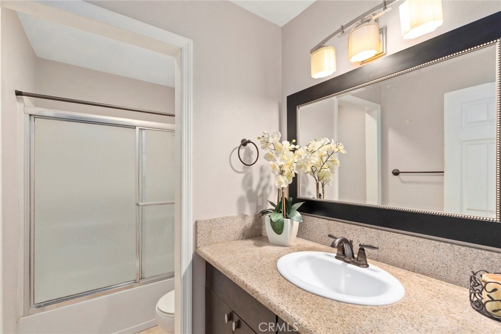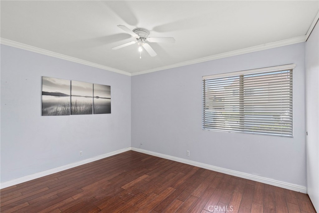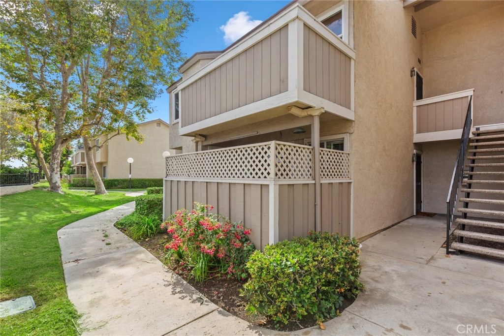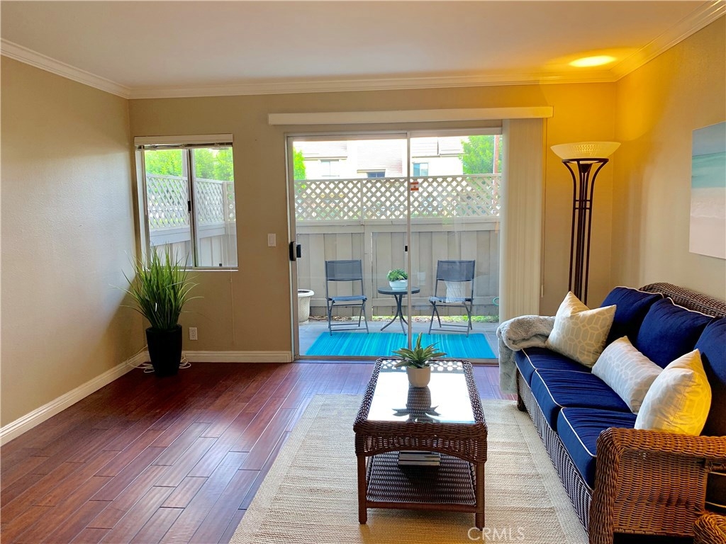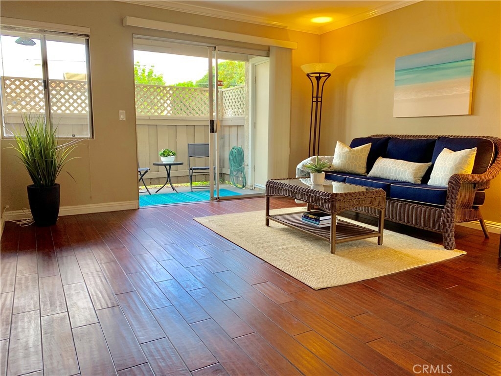 Perfect investment or first property in this well maintained gated community. Whether you’re buying your first home or it’s time to downsize, this home is ideal. Located in Shady Glen, a beautifully maintained gated community, this 2 bedroom 1 bath end unit condo features a spacious living room with access to private patio. Single level home is on the ground floor so bringing kids or groceries home is a breeze. There are hardwood floors and crown molding throughout. Beautifully upgraded kitchen and bath have granite counters. Kitchen has lots of room for table and chairs. Inside laundry is large enough for full size side by side washer and dryer. Both bedrooms have ceiling fans and large closets. Assigned parking space is conveniently located close to unit; with unassigned guest parking. New upgraded balconies and patio walls are being installed throughout the complex with no special assessment! Amenities include clubhouse with convenient bathrooms and a sparkling swimming pool for your family and guests to enjoy! Affordable monthly HOA dues include water and trash. Close to award winning Cypress schools; Oxford Academy is less than one and a half miles away. Nearby Cypress College, shopping, parks and freeways. Cypress is centrally located between Los Angeles and South Orange County. This adorable home is a must see!!!