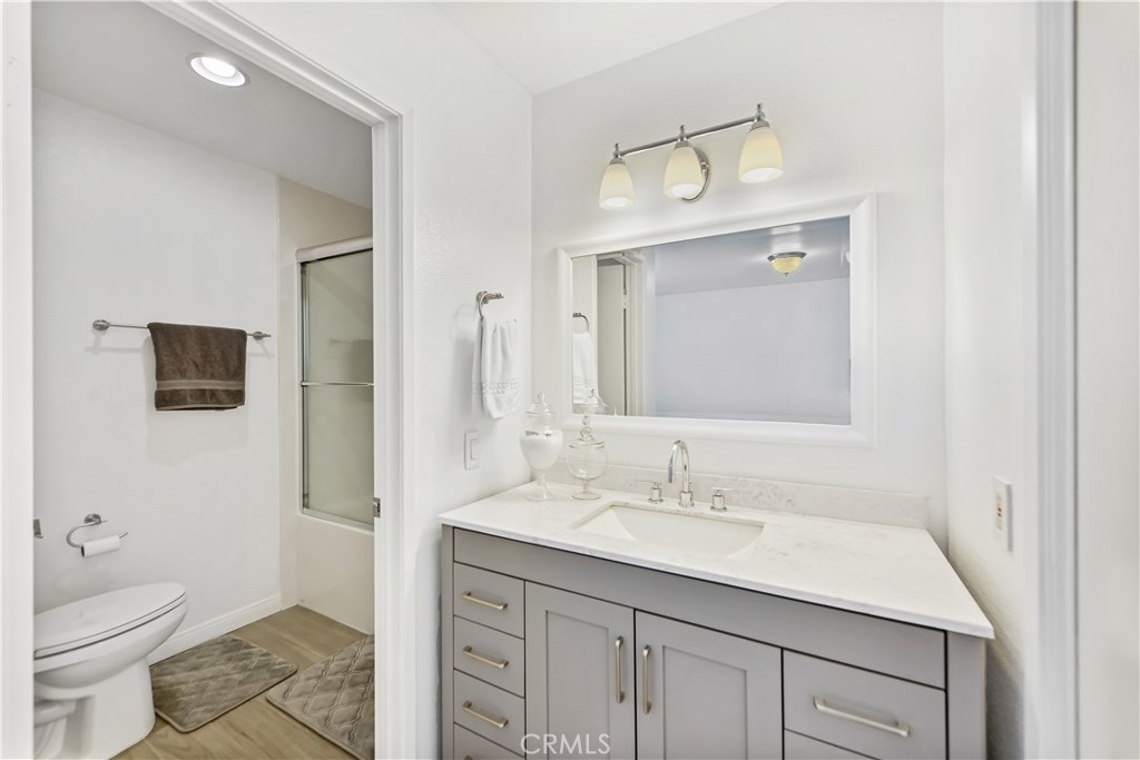 PRICE REDUCED! MOTIVATED SELLERS! Amazing opportunity to own a rare and remodeled 3 bedroom, 2 bath home in the wonderful and gated community of Shady Glen. Better yet, this unit is a first floor unit so there is no need to worry about any stairs. Perfectly located with views of the pool and entertainment area, this home offers a private and covered patio perfect for entertaining. Inside, you will find a new, remodeled kitchen with custom quartz counters, a designer marble back splash, beautiful cabinets, and stainless Steel LG appliances. Rich and colorful laminate wood flooring throughout the home, crown molding, and two full and remodeled bathrooms all add to the charm of this home. With plenty of natural light coming into all rooms, a roomy floor plan with 3 private bedrooms, plenty of storage, recessed lighting, scrapped ceilings, and an inside unit laundry area all make this incredible unit a perfect home. With 1,131 square feet of living, this is the largest home in the complex and one you do not want to miss. Super close to award winning Cypress Schools and Oxford Academy, and within walking distance to Clara J. King Elementary. This private and safe community is close to shopping, parks, and all of the schools you can be proud of. Hurry, a home with this size, in this condition, and in this location will not last long! BRING US AN OFFER TODAY!
