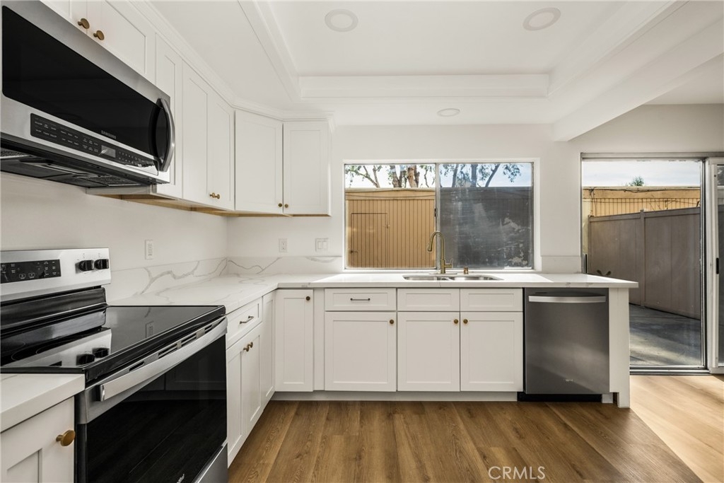 This recently updated two-story 3 bedroom residence in the popular Tanglewood North community of Cypress offers a spacious layout with a newly remodeled kitchen with white shaker style cabinets, walk in pantry, stainless steel appliances, quartz countertops, and gold finishes for that elegant touch. Spanning over 1,426sf in size, the entire property has been freshly painted with new LVP flooring, recessed lighting, central air/heat, downstairs guest bathroom, a sunken living room and dining area that opens up to a large private patio; perfect for entertaining or to create a relaxing oasis. Plus, convenient access to a two car garage with washer/dryer hookups and plenty of additional storage. Upstairs there’s new carpet throughout all 3 bedrooms including a spacious master bedroom w/ a walk in closet and french doors to a balcony overlooking a beautiful greenbelt. With a full size bathroom that includes a nice sized vanity, modern black finishes, and separate bathtub and walk in shower to meet all your family needs. The Tanglewood community offers tons of greenery, access to several pools & clubhouses; and is in close proximity to El Dorado & Veterans Park, tons of local restaurants & shops, and top Cypress public schools including Landell Elementary and Oxford Academy. Virtually Staged. This one won’t last!