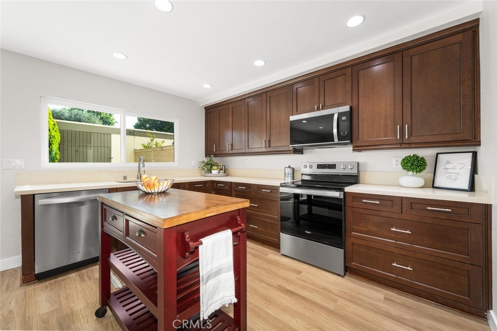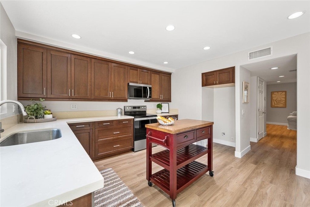 Looking for all new without the stress of remodeling? This end-unit townhome in a quiet Cypress community has been completely transformed and is ready for you to move right in. The heart of the home is a brand-new kitchen with quartz countertops, stainless steel appliances, and sleek finishes—perfect for both everyday cooking and entertaining. Every bathroom has been beautifully remodeled too, each with modern touches and rain shower heads for that spa-like feel. Throughout the home, you’ll find luxury vinyl flooring, scraped ceilings, and recessed lighting in every room, giving the space a bright, modern energy. A newer Lennox AC and heating system ensures comfort year-round, and thoughtful details—like the new garbage disposal—show that nothing was overlooked. Enjoy outdoor living on your private patio, a perfect spot for morning coffee or winding down at the end of the day. And with an easily accessible two-car garage, parking and storage are always convenient. All of this comes with a prime location near award-winning Cypress schools, parks, sports fields, restaurants, and all the amenities that make Cypress one of Orange County’s most loved communities. This home is a rare catch—completely move-in ready, stylishly updated, and designed for those who want the best of Cypress living without lifting a hammer.