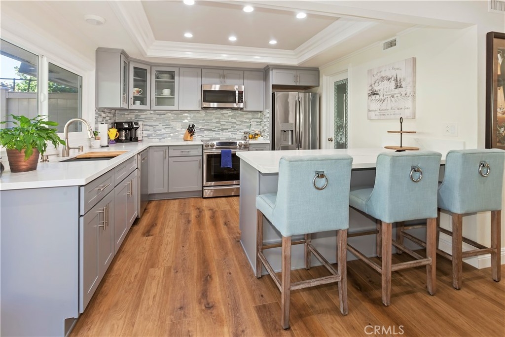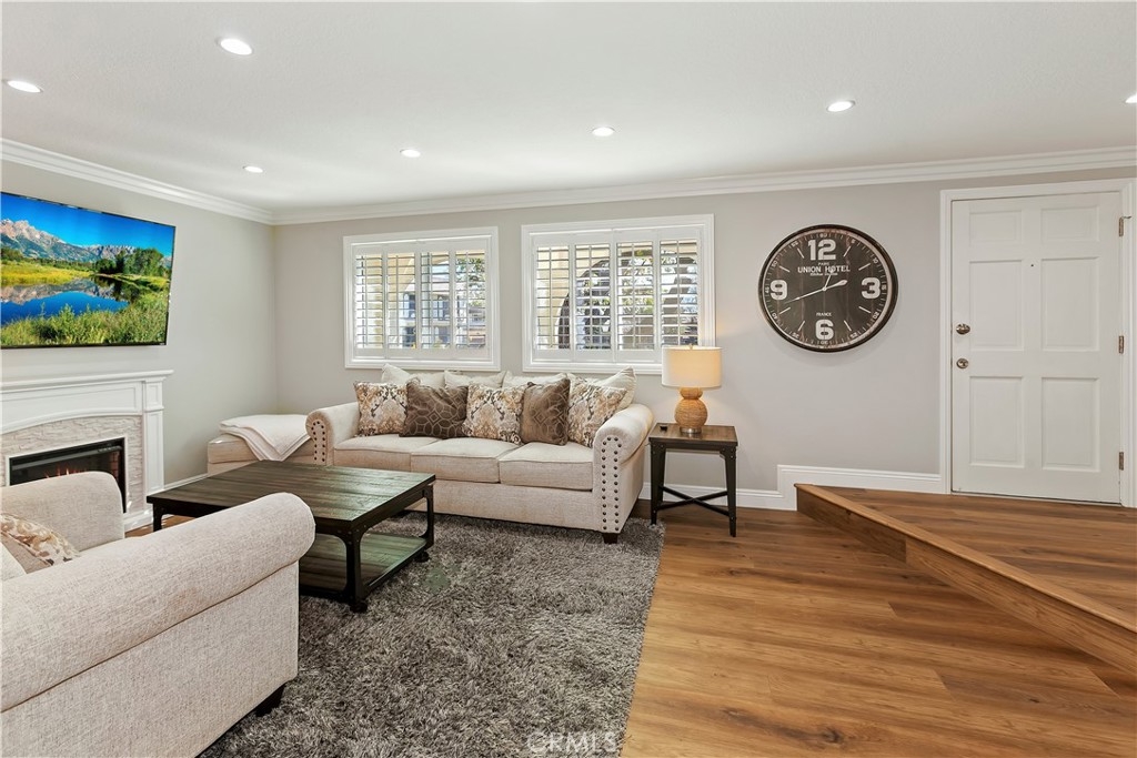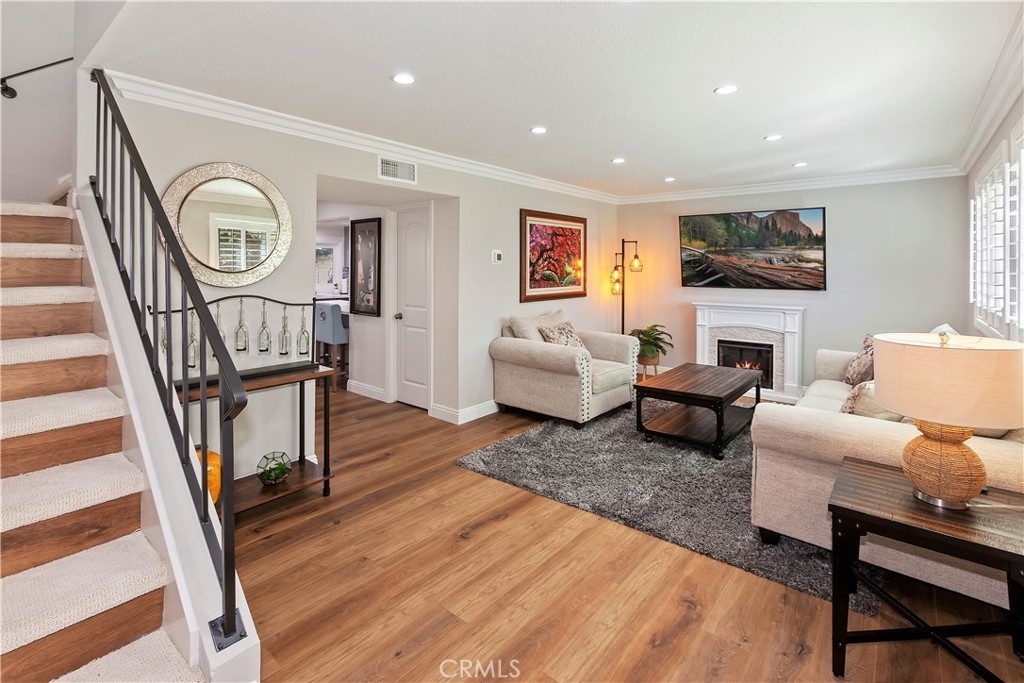 Rare opportunity!! This two story, 3 bed/2 bath townhome in the quiet community of Tanglewood North has been extensively remodeled by its owner, and is in pristine turn-key model home condition for it's next owner. Upgrades include gorgeous vinyl flooring, plantation shutters, new dual-pane windows, crown moulding and wainscoting, recessed lighting, glass-front kitchen cabinets, a walk-in pantry, quartz countertops, a wet bar including wine fridge, custom shelving in the downstairs closet, and a gorgeous electric fireplace in the living room to add to the coziness of the room. The primary bedroom has a built-in desk with LED lit mirror, walk-in closet and plush carpeting, upgraded upstairs bathroom with separate tub and glassed-in shower. The private back patio is an absolute oasis with fountains and a patio cover, connecting to the 2-car garage that's perfect for cars, storage, and more. New HVAC system provides perfect heat and A/C all year long! This community is gorgeous with a clubhouse, multiple pools and thoughtfully landscaped trees and greenbelts throughout. Walking distance to Oxford Academy (California’s #1 Ranked High School) and highly rated Landell & Arnold Elementary, and Lexington Junior High.