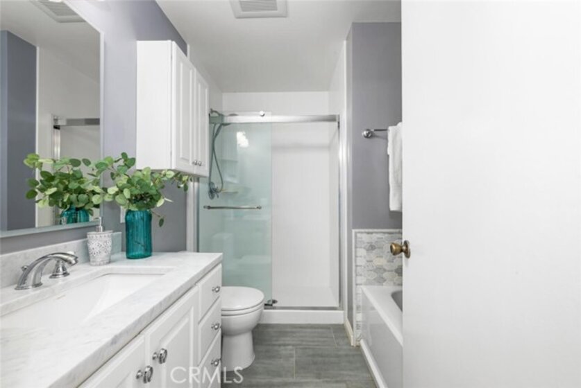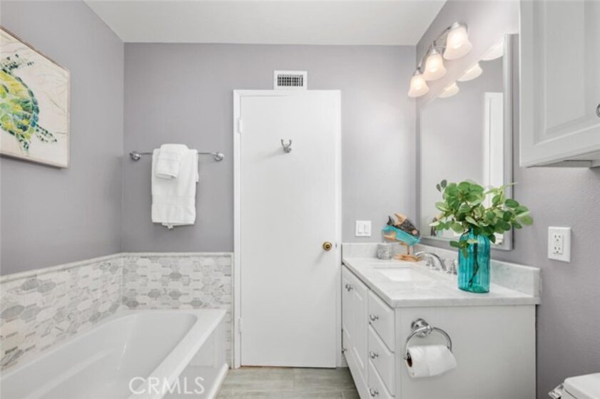 Modern Comfort and Charm in Cypress Welcome to your future happy place! This delightful 3-bedroom, 1.5-bathroom home is not just a residence—it's an experience, nestled in a vibrant community where charm meets convenience. Step inside and be greeted by the fresh ambiance of newly painted walls. The gleam of luxury vinyl floors upstairs and partially downstairs adds to the inviting atmosphere. The kitchen and dining room are a stylish affair with chic tile flooring. Cooking enthusiasts will not be disappointed with ample cabinet space and a breakfast bar, perfect for those quick morning meals or late-night snacks. The remodeled downstairs powder room adds a dash of sophistication, ensuring even your guests feel pampered. The upstairs master suite is a true retreat, where you can escape from the world and enjoy a morning coffee on the private balcony. The main bathroom is a showstopper, featuring a barn-style shower door, a separate tub for those long, relaxing soaks, and a designer mirror that adds a touch of glamour. The comfort continues with double-paned windows, a newer AC unit, and scraped ceilings. Outside, you'll find a stylish, private patio with designer pavers, an aluminum-style cover, and a fan — perfect for al fresco dining or simply unwinding under the stars. Plus, there's an easily accessible 2-car garage too! The community grounds and walkways are beautifully maintained, offering a serene backdrop for your daily strolls. With top-rated Cypress schools just a short walk away, this location is a win for families. This home is a blend of modern comfort and unparalleled charm, just waiting for you to move in and make it your own. Don't let this gem slip away—schedule a viewing today, and step into a lifestyle of style le of style, convenience, and a touch of whimsy.
