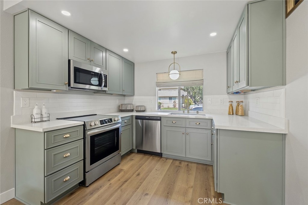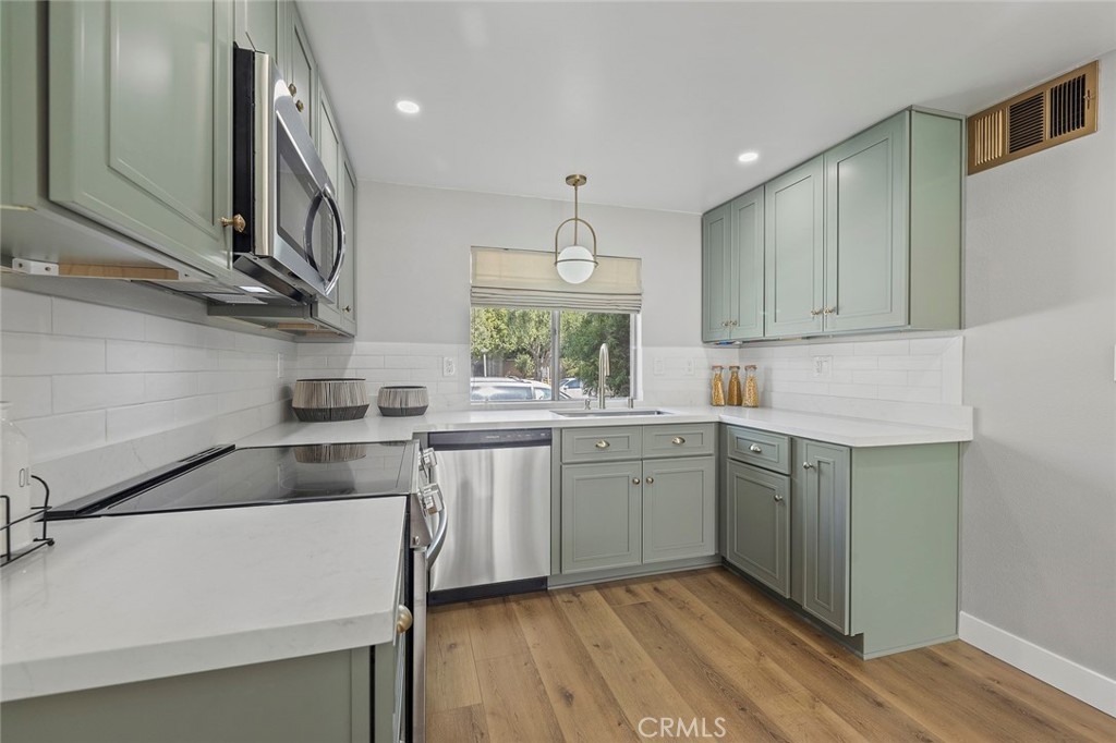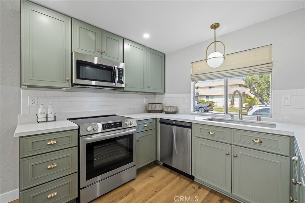 Don't miss this exceptional opportunity to own a stunning SINGLE STORY, END UNIT townhome nestled in the highly coveted Tanglewood community. Known to be one of Cypress' treasured communities, Tanglewood offers an array of amenities, with sprawling park-like greenbelts, 3 community pools and wading pools, clubhouses and play areas. This wonderful two bedroom, one bath home comes with a large patio and a full size 2 car garage. Being a corner lot, it has one of the larger lot sizes in the community. This home has been fully remodeled with a brand new kitchen and bathroom, new exterior Electric Panel, new AC, new Luxury Vinyl flooring and a freshly painted interior. The kitchen boasts of custom built, Soft-close Shaker cabinets, Quartz countertop, all new Stainless steel appliances, hardware and lighting fixtures. The bedrooms are spacious, with large closets, Roman blinds and brand new Carpet. The bathroom features new elegant tile flooring, new bathtub and vanity, all new hardware and lighting. The oversized sliding door creates an expansive feel in the room, as if bringing the outdoors inside. Relax and unwind in the backyard patio, a private area for a second living space creating a true oasis. This is the perfect starter home, investment or a home to retire to. Walking distance to the high ranking Landell Elementary. Goes to Arnold Elementary, Lexington Jr. High, Cypress HS or test to the renowned Oxford Academy. Turn-key and Move-in ready! You don't want to miss this one! Welcome to 9875 Via Sonoma and Welcome Home!