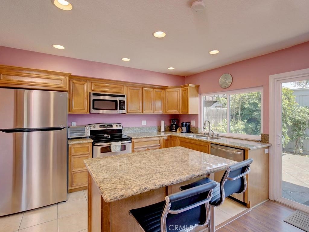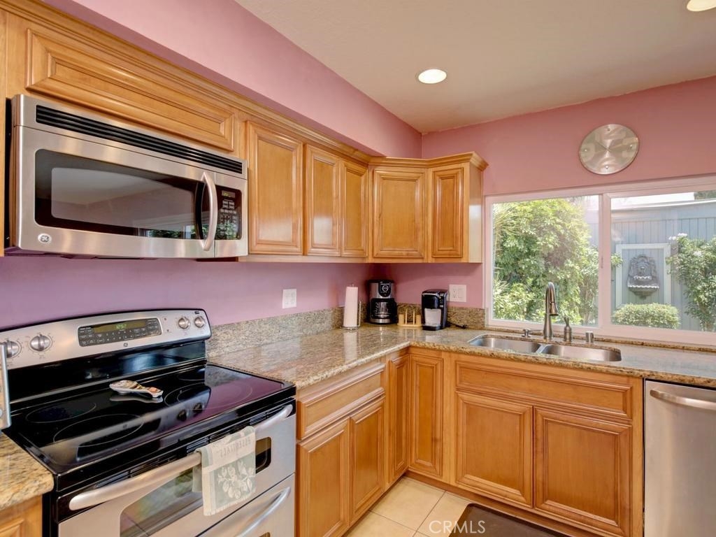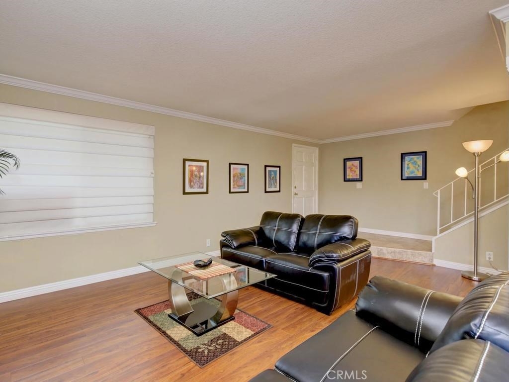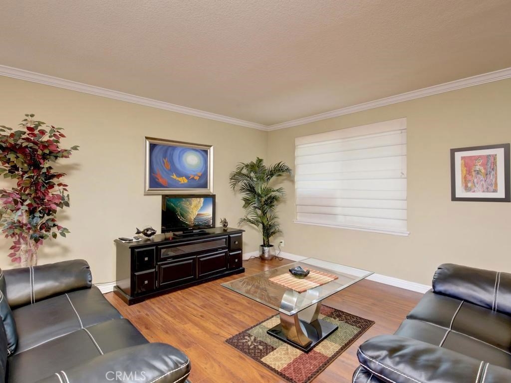 This is the largest floor plan in Tanglewood. 1748 Sq Ft, with 4 large bedrooms and 2.5 baths. Great private location on the end. It is on Bloomfield but has a Blockwall and trees in front making a very seclusive front area. Completely upgraded with newer windows, scrapped ceilings remodeled baths and kitchen, Laminate flooring, recessed lighting and Central Air. The kitchen features Stainless steel appliances, Granite counters, Oak cabinets with roll out drawers and center counter. Also has formal dining room and casual dining off kitchen. Bonus.... Los Alamitos schools!