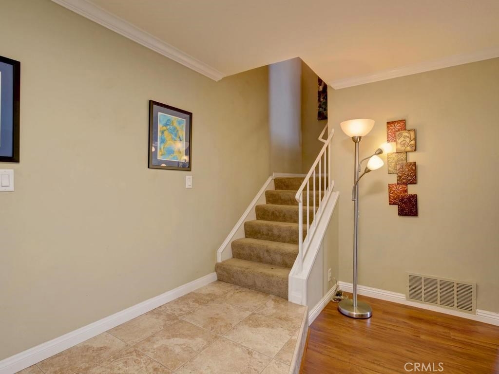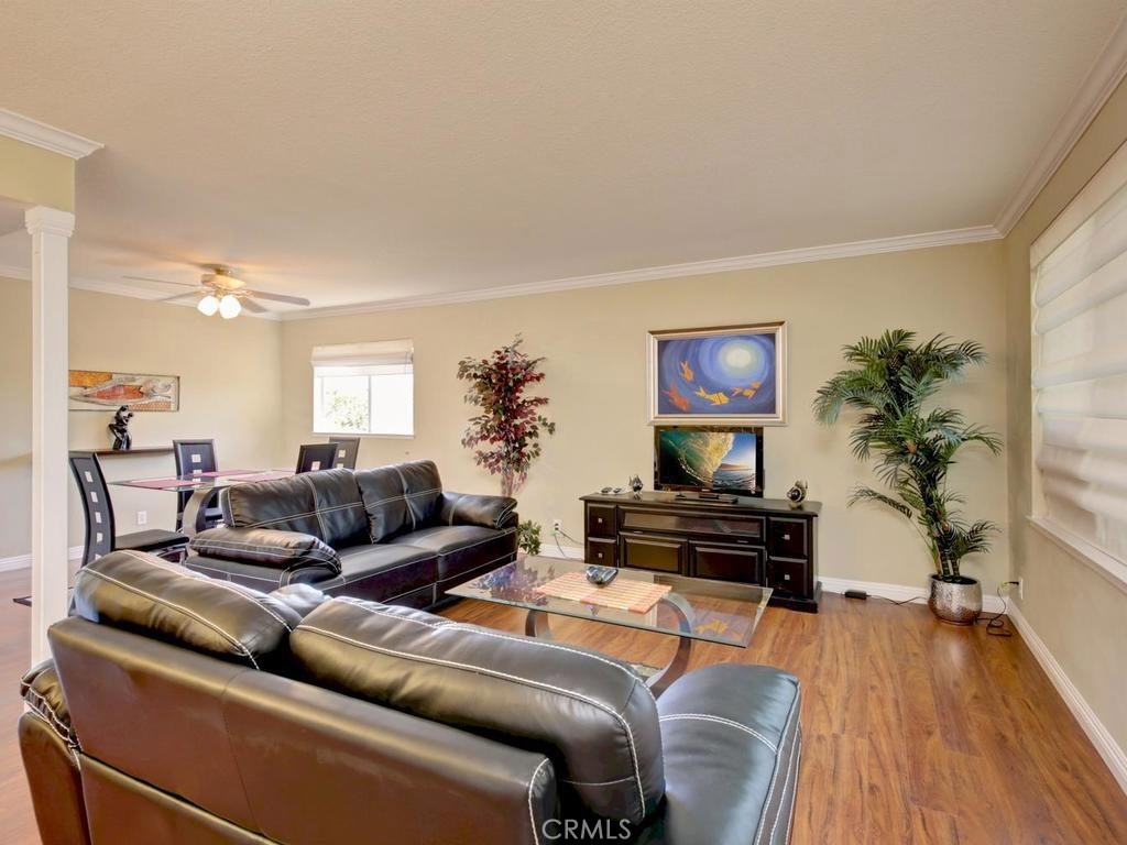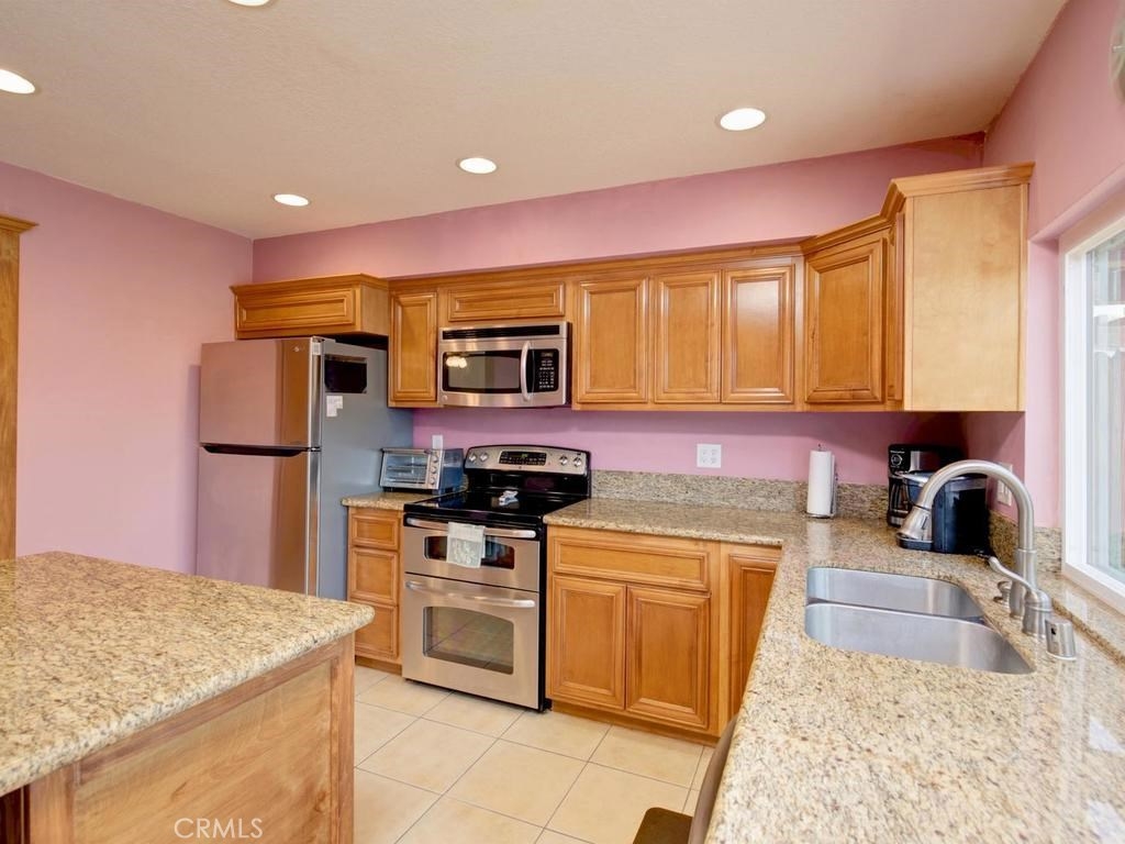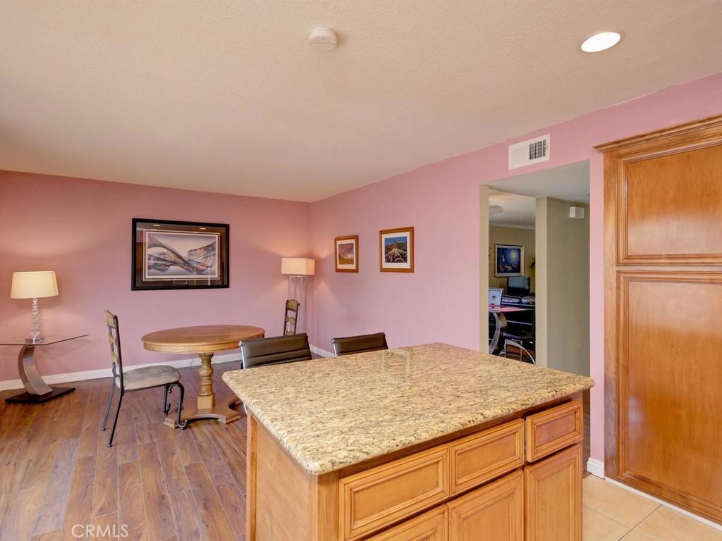 This is the largest floor plan in Tanglewood. 1748 Sq Ft, with 4 large bedrooms and 2.5 baths. Great private location on the end. It is on Bloomfield but has a Blockwall and trees in front making a very seclusive front area. Completely upgraded with newer windows, scrapped ceilings remodeled baths and kitchen, Laminate flooring, recessed lighting and Central Air. The kitchen features Stainless steel appliances, Granite counters, Oak cabinets with roll out drawers and center counter. Also has formal dining room and casual dining off kitchen. Bonus.... Los Alamitos schools!