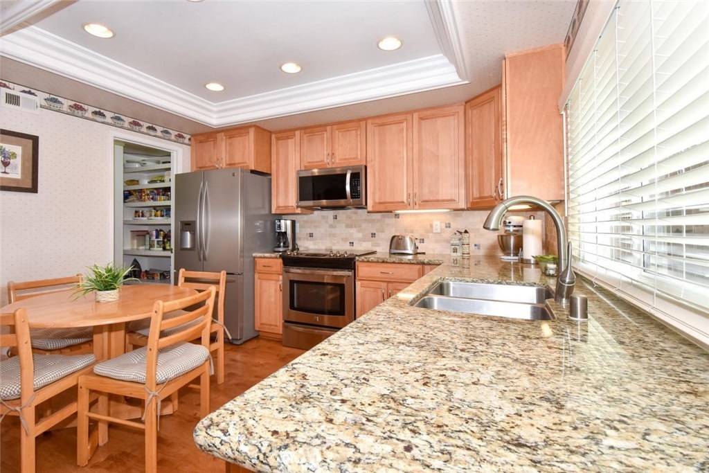 I’m a Berkeley model and a beautiful one too. I’ve been around for a while so it’s safe to say I know what I’m talking about. I may not be the biggest one in Tanglewood, but nothing can beat my location - right on a huge, lush greenbelt in the renowned Los Alamitos School District. I have to admit - I had some work done on me. Laminate floors throughout the first floor, recessed lights, all new double pane windows and interior doors, beautiful front door, copper plumbing, smooth ceilings and crown moldings. I had a fireplace put in my living room and upgraded my stair railing. I don’t regret a single dollar though. I’m perfect. People say I’m “hot stuff”. I don’t really know why. My A/C is in perfect condition! And my interior is cool and inviting. Now that I’m thinking about it, they might be talking about the fireplace in my living room. It gives such an amazing sense of warmth and coziness anytime you decide to use it. I absolutely love my 3 bedrooms and 1.5 baths but my heart lies in the all remodeled kitchen and a huge, separate pantry. New cabinets galore, pull out shelves and extras, amazing granite countertops and a travertine backsplash - need more? I had lights put under the cabinets and made sure all appliances were stainless steel. My dining room overlooks a tranquil patio - we can have coffee in or outside, the choice is yours. Just make it a quick one. I’m not easy, but won’t last long!