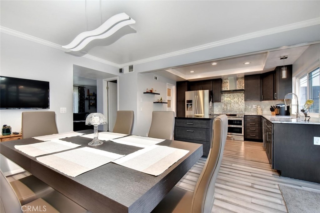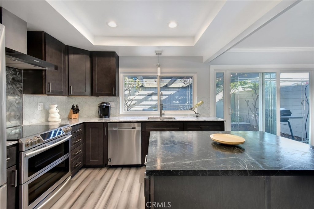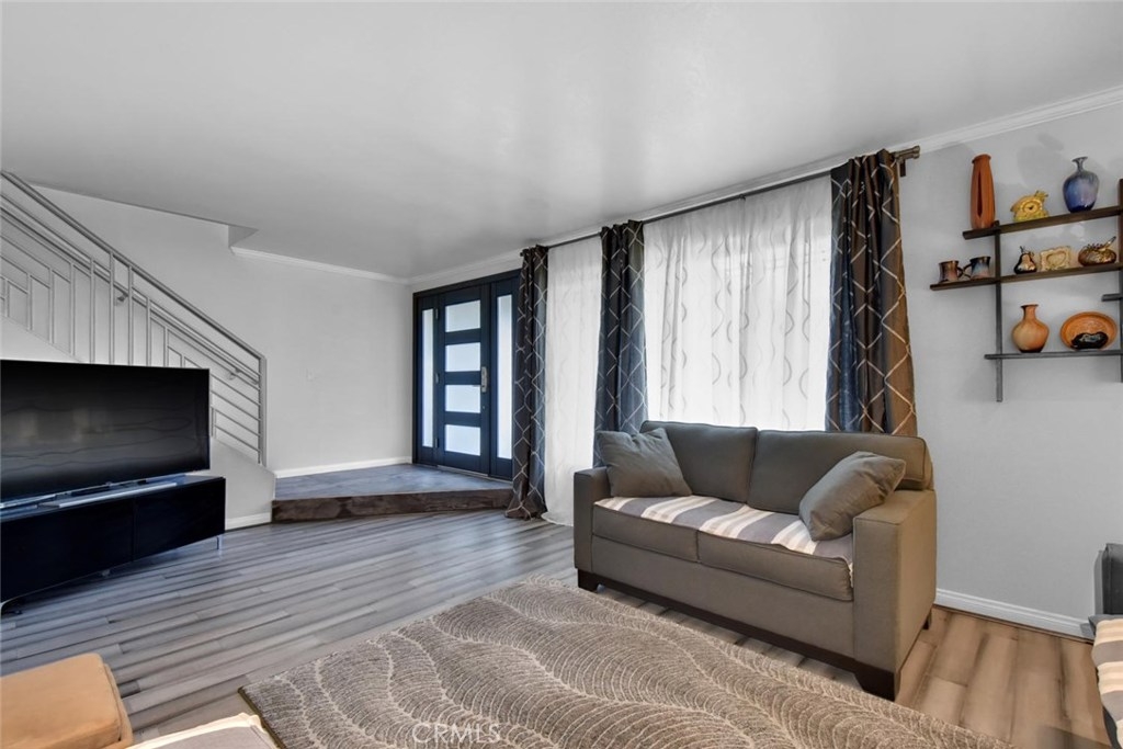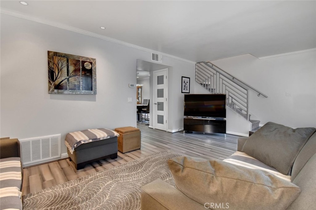 Gorgeous top to bottom Tanglewood remodel in award winning Los AL School district (LAUSD). Enter the property through a custom front door that has been matched to interior doors. Beautiful engineered hardwood floors throughout lower level lead you through the family room and into a spacious and showstopping kitchen. Custom counters were made using soapstone and quartz. New Samsung range oven & dishwasher, walk in pantry as well as an additional service/storage closet. Customization's include etched/matching dual pane windows throughout, matching slider, crown molding, baseboards, LED lighting, custom welded baluster/rail, designer bath fixtures, shower enclosure and jacuzzi tub. All new patio has been accented with horizontal wood walls on both sides, flooring and dark stained pergola/awning. Copper plumbing and new water heater, new electrical panel inside and new garage door and opener. Residents have access to community clubhouse and pool. Property is located just 5 minutes away from the highly acclaimed Oxford Academy.