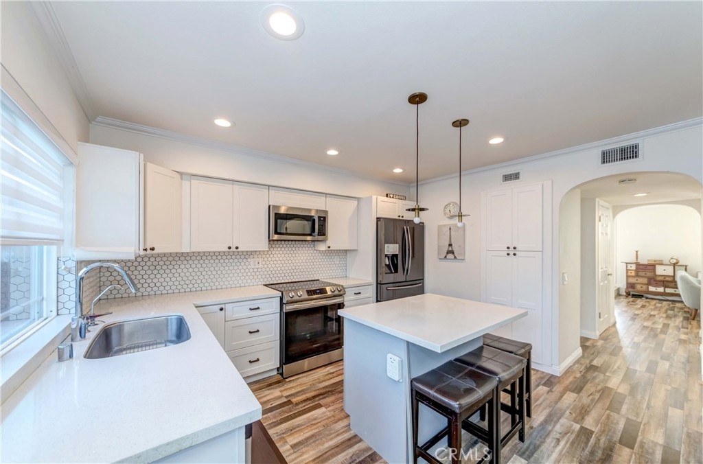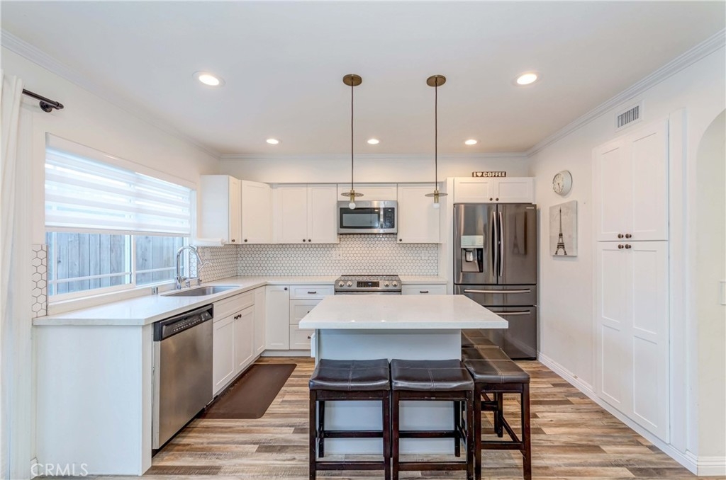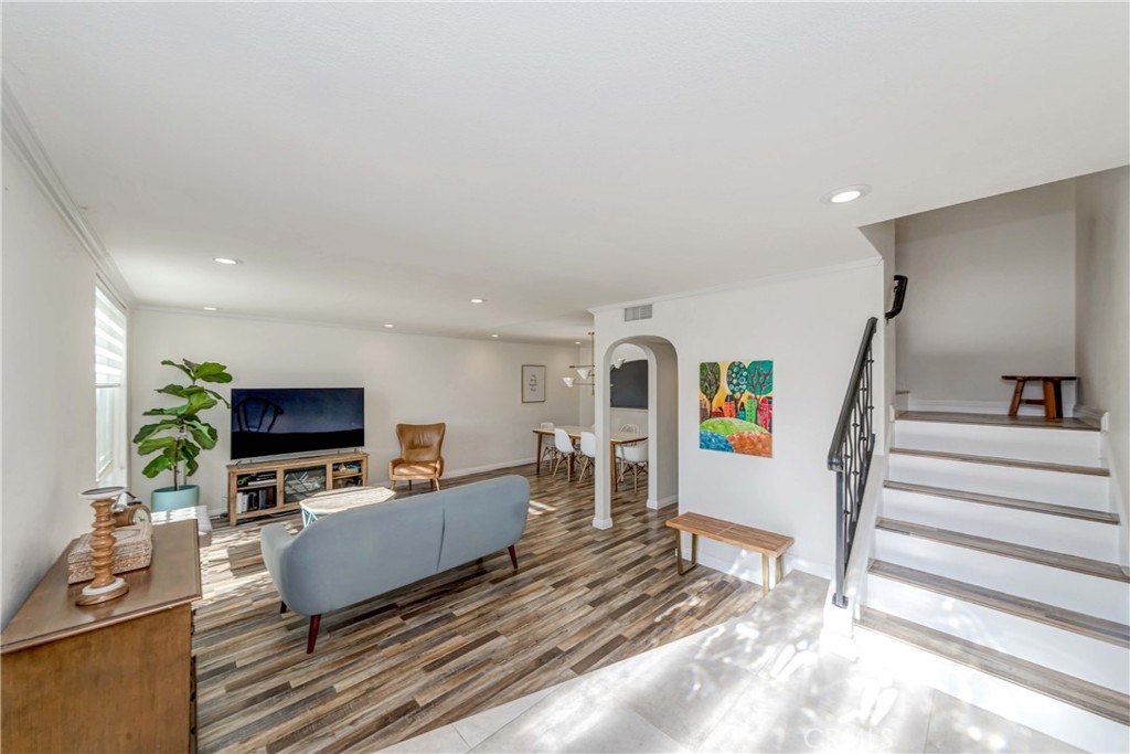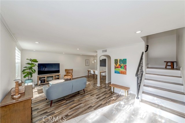 This POPULAR Tanglewood Townhome is nested within the Award Winning Los Alamitos School District. This beautifully updated home features 4 bedrooms, 2.5 bathrooms and 1,748sqft of living space. Modernized colored laminated flooring on all floors with updated vanities in the bathrooms. The living room has lots of natural lights shining in and the recessed lights are just an extra touch. Private Patio area in the back allows families to gather for BBQ and 2 car garage is attached to it. There is a small playground with a big lot just steps from your front door and many large parks around the neighborhood. Many parking spaces are available if you are tired of looking for parking spaces after work. No need to worry that in this neighborhood. Walking distance to all the highly desirable schools of Los Alamitos Elementary, McAuliffe Middle, and Los Alamitos High.