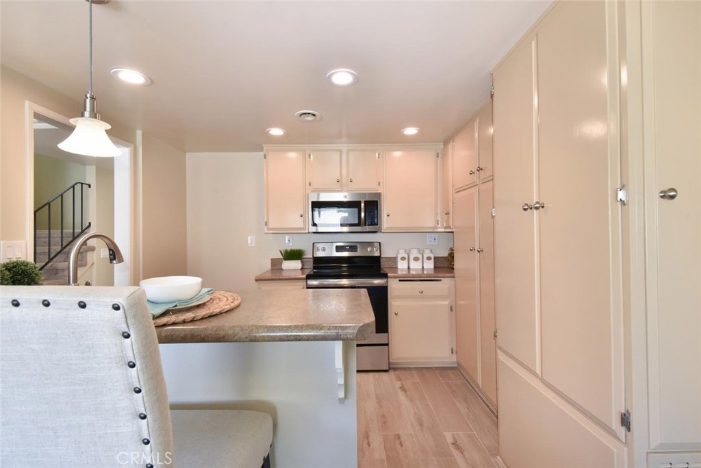 Curious about what makes Tanglewood, Cypress such a desirable place to live? This lovely home, located on the biggest greenbelt in the neighborhood, is a fantastic opportunity for you to find out! So come in, explore the bright and cozy living room overlooking a tranquil patio which is made for entertaining and your morning cups of coffee. Delve into the open kitchen/dining room which features neutral cabinetry galore with unique counters and neutral floor tile as well as a breakfast bar - perfect for everyday dining. Be sure to check out the completely redone downstairs bathroom! Its new vanity, cabinet and toilet have been selected with utmost care and taste. Don’t forget! It is conveniently connected to the utility room and extra storage. Enjoy three good size bedrooms and additional full bathroom upstairs. All bedrooms have ample closet space to make your new home the most comfortable place to live. This terrific home with designer paint throughout , a new carpet and beautiful tile floors thru out downstairs and is move in ready and, with a beautiful location like this one, won't last long! Call for a private showing today!