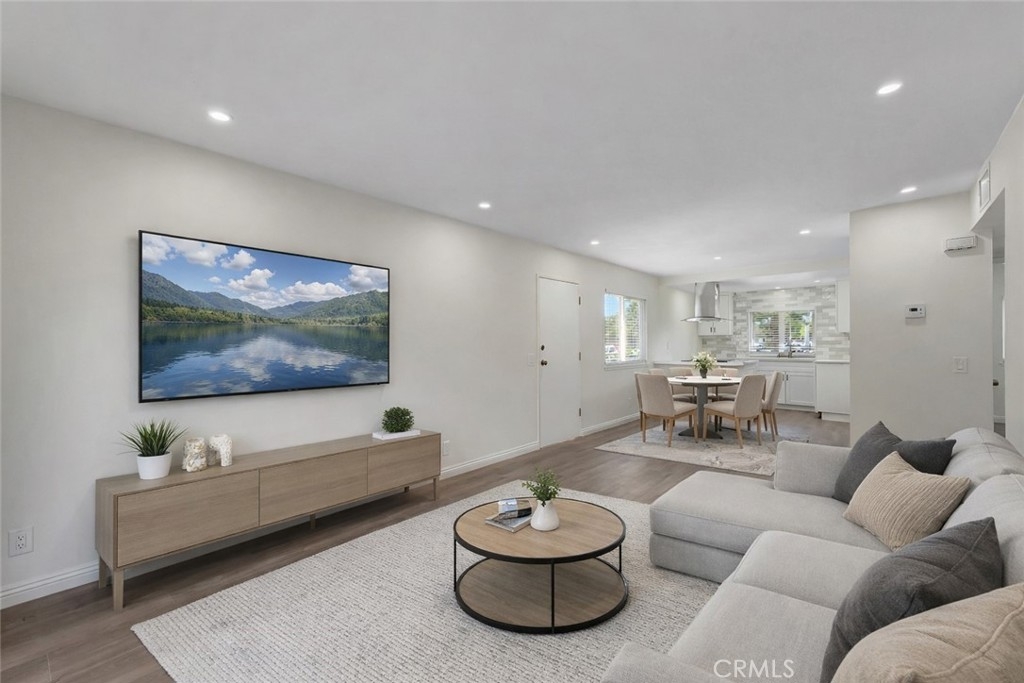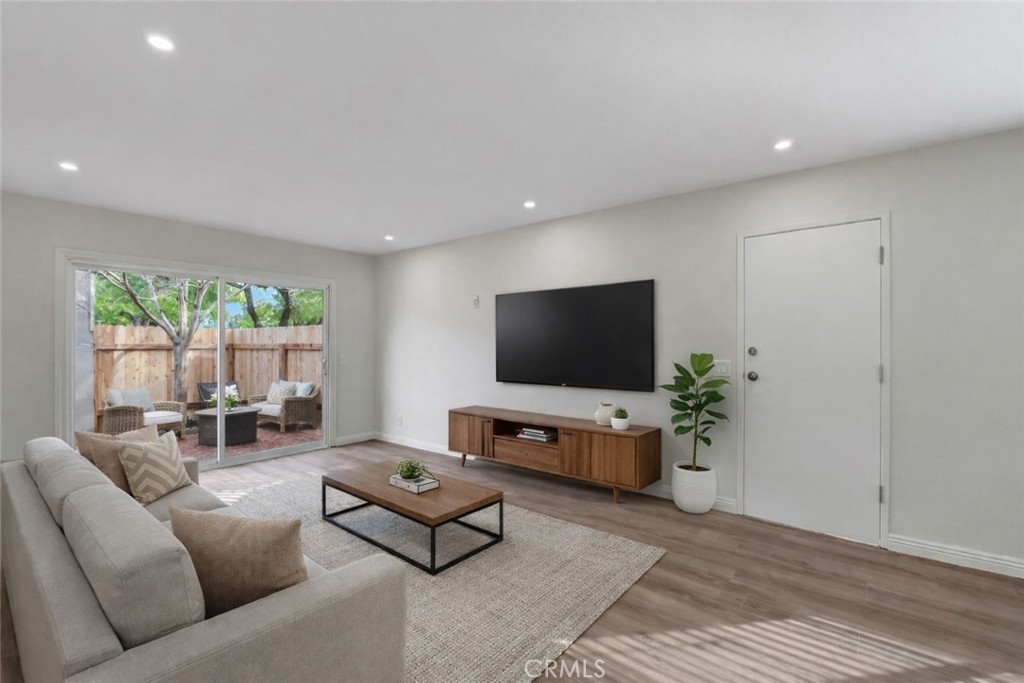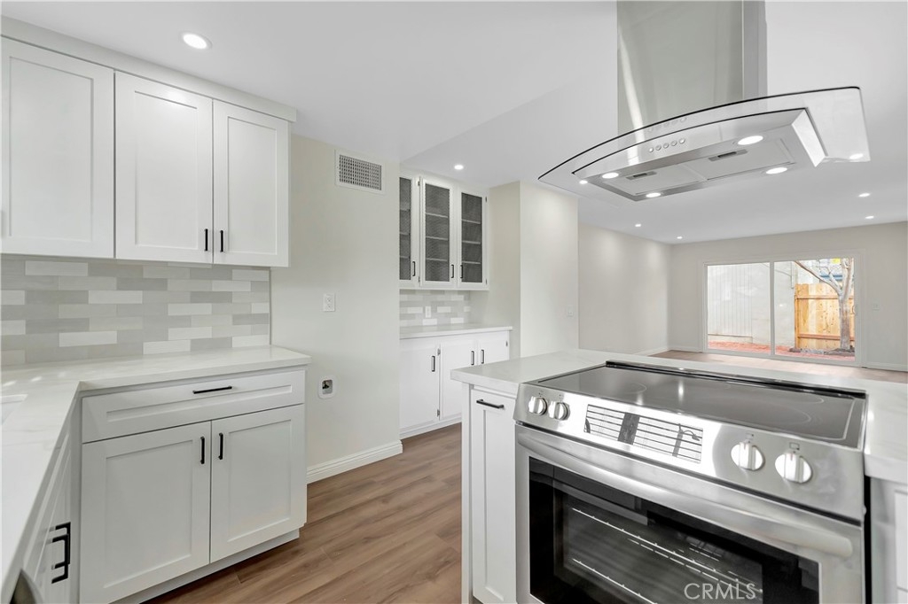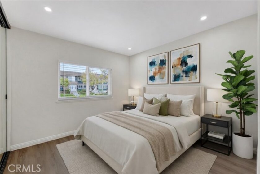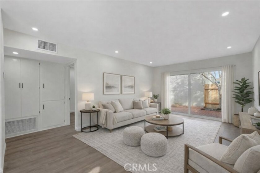 Welcome to this stunning, fully renovated single-story end unit in the highly sought-after Tanglewood community of Cypress. Perfectly positioned within the award-winning Los Alamitos Unified School District, this move-in-ready home blends modern upgrades with comfort and convenience. Step inside through a brand-new front door to discover wide-plank luxury vinyl flooring, fresh interior paint, recessed lighting throughout, new copper plumbing and an abundance of natural light streaming through double-pane windows and sliding doors. The completely reimagined kitchen showcases new cabinets, all-new appliances including a stove, dishwasher, and vent hood, paired with a custom designer backsplash that flows seamlessly into a stylish coffee and beverage bar—both functional and visually striking. The bathroom has been fully remodeled, and the home features a brand-new central heating and air conditioning system, ensuring year-round comfort. As a private end unit, the residence lives more like a single family home and enjoys tranquil greenbelt views and a light, open atmosphere rarely found in attached homes. Outdoor living is equally inviting with a private brick patio, and a brand-new luxury wood fence, ideal for relaxing or entertaining. The large two-car garage offers a brand-new water heater, washer and dryer hookups, generous storage, and parking for two vehicles, with ample guest parking conveniently nearby. Residents of the Cypress Tanglewood HOA enjoy access to two community pools and beautifully maintained greenbelts. Ideally located near the 405, 22, and 605 freeways, this home provides easy access to shopping, dining, parks, and coastal destinations including Seal Beach and Long Beach, just minutes away. This single-level, fully upgraded 2026 home delivers modern living, top-tier schools, and an exceptional Cypress location—an opportunity not to be missed.